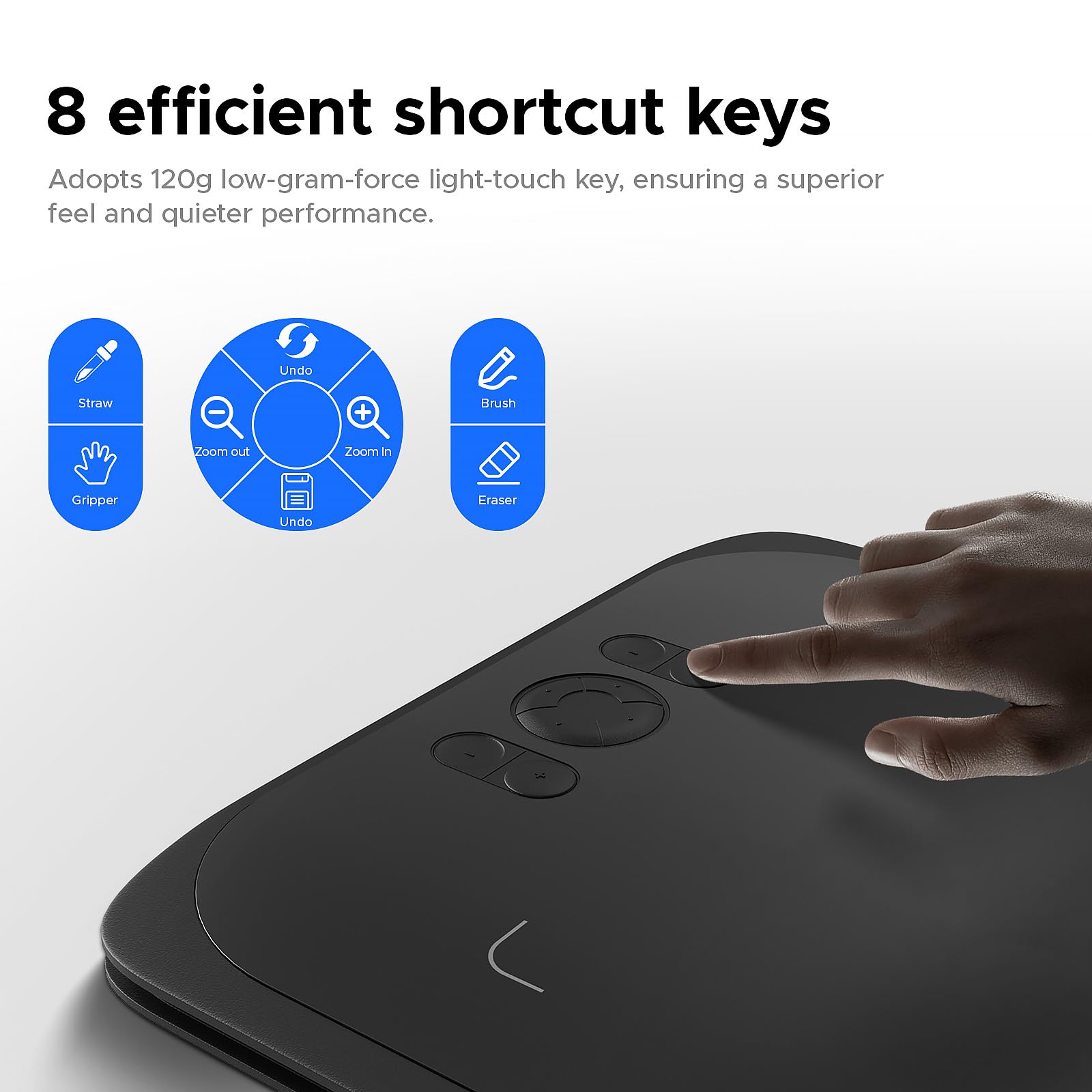 8 Customizable Shortcut Keys: The drawing tablet comes with 8 programmable shortcut keys, allowing you to streamline your workflow. Easily access tools like brush switching, eraser, undo, and brush size adjustment for enhanced productivity.