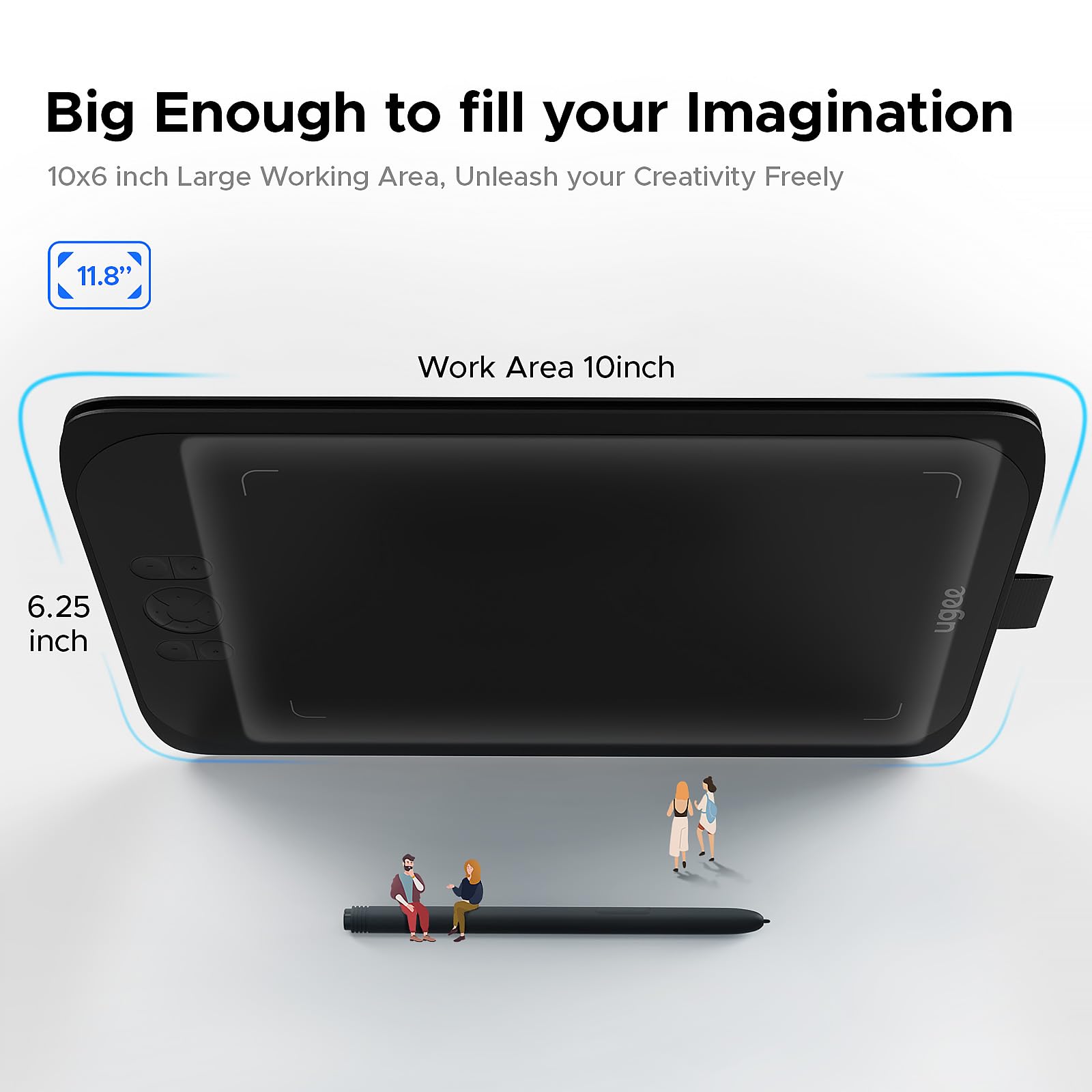 Large 10x6.25 Inch Drawing Space: With a spacious 10x6.25-inch active area, the Ugee M808 graphics tablet offers ample room for creativity, making it ideal for both beginners and professional artists. Its paper-like surface delivers a smooth, lag-free drawing experience.