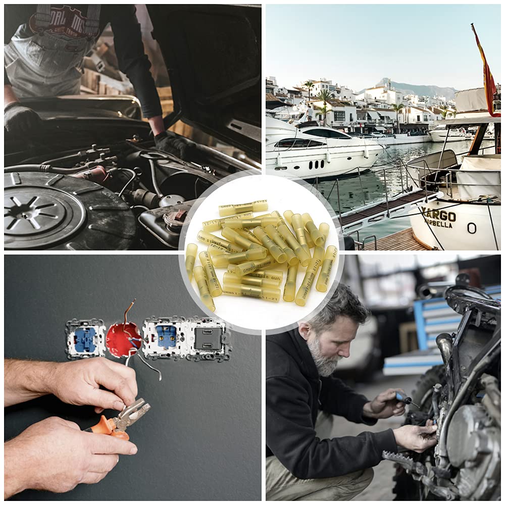 Package Includes: 50Pcs Yellow heat shrink butt connectors that can be used on wire AWG from 12 to 10