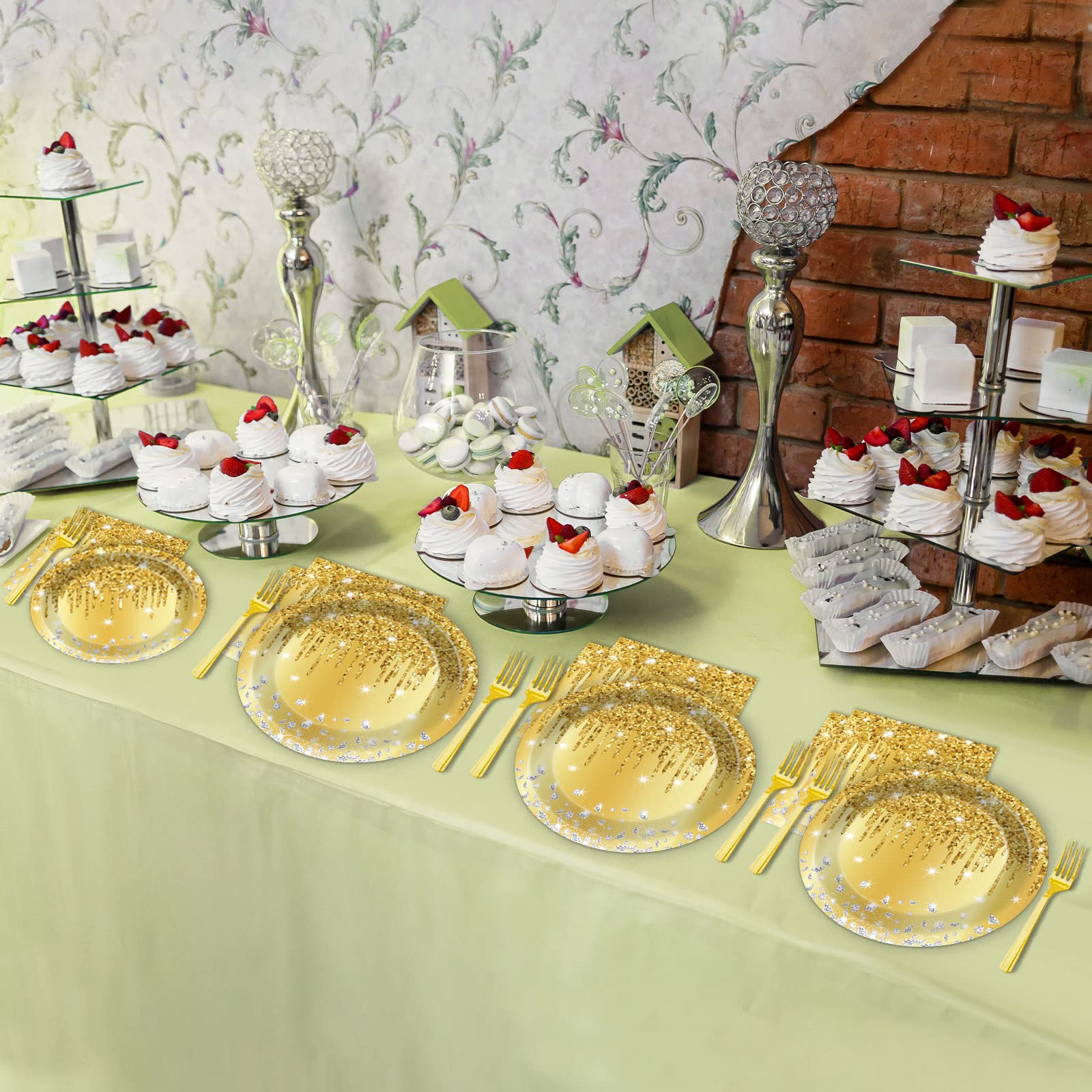 Perfect for every occasion: Gold party supplies set of paper plates napkins gold plastic forks and is the perfect choice for all events and occasions.Such as wedding, engagement parties, girl and boy birthday parties, adult parties, bridal shower, housewarming parties, graduation and get -together parties and so on.