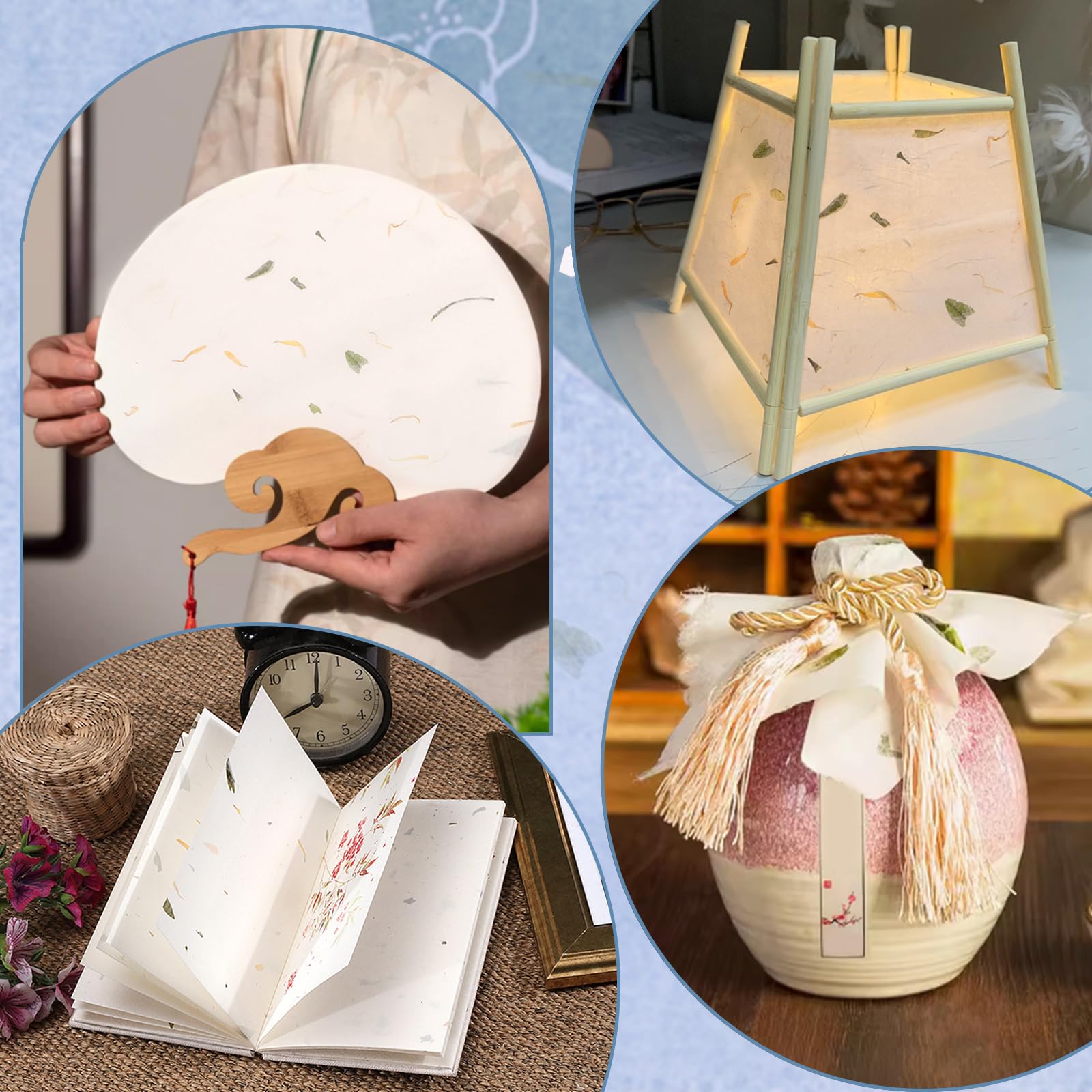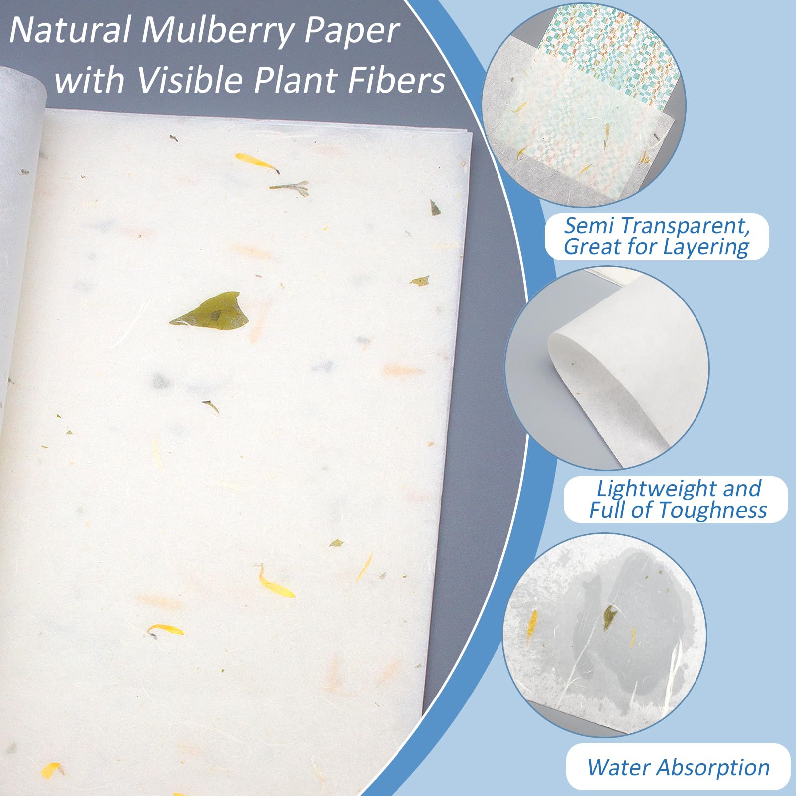 Natural Plant Material- These mulberry paper is made of quality bark with visible plant fibers in natural texture. Lightweight and full of toughness, not easy to tear and delicate to use. Well packaged with cardboard to avoid crease during shipping!