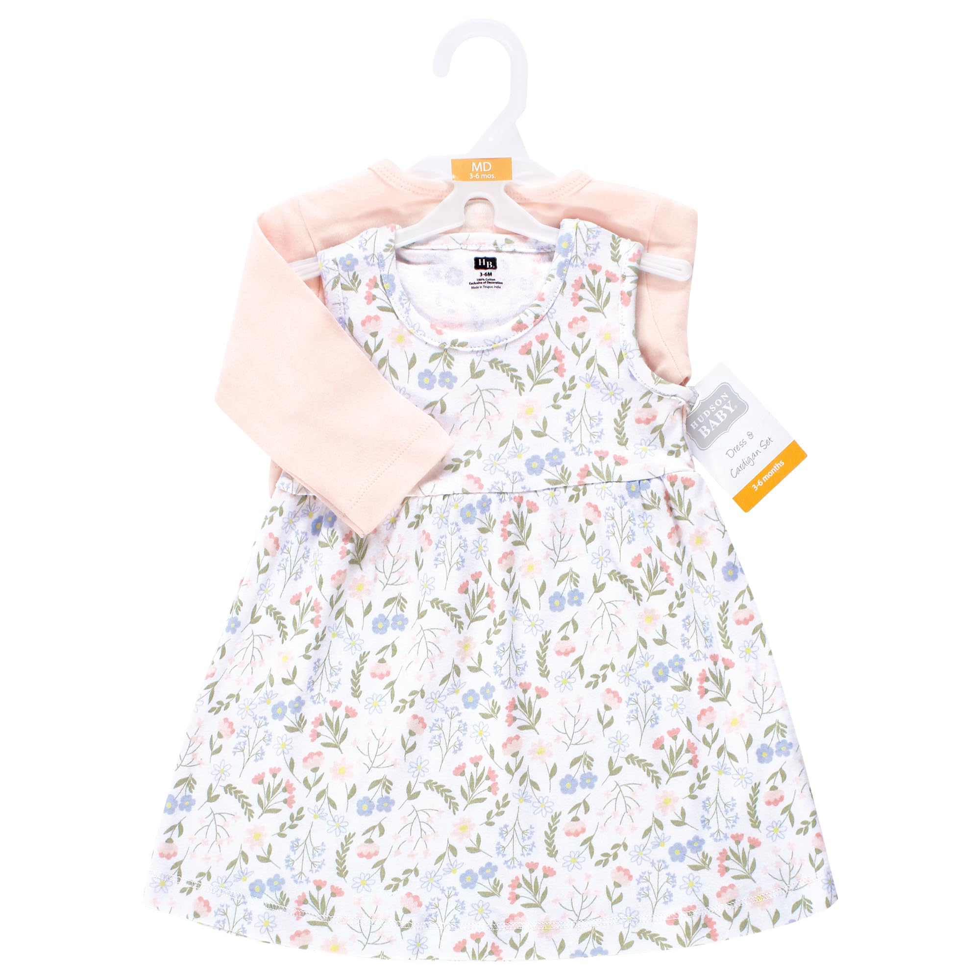 Description Hudson Baby dress and cardigan set is the cutest fashion outfit for your baby and toddler girl. Both dress and cardigan are made from super soft 100% interlock cotton. Our dress will keep your little feeling free and cool while the cardigan offers long sleeves for added warmth when needed. Our cardigan comes with snap closure for easy on and off.