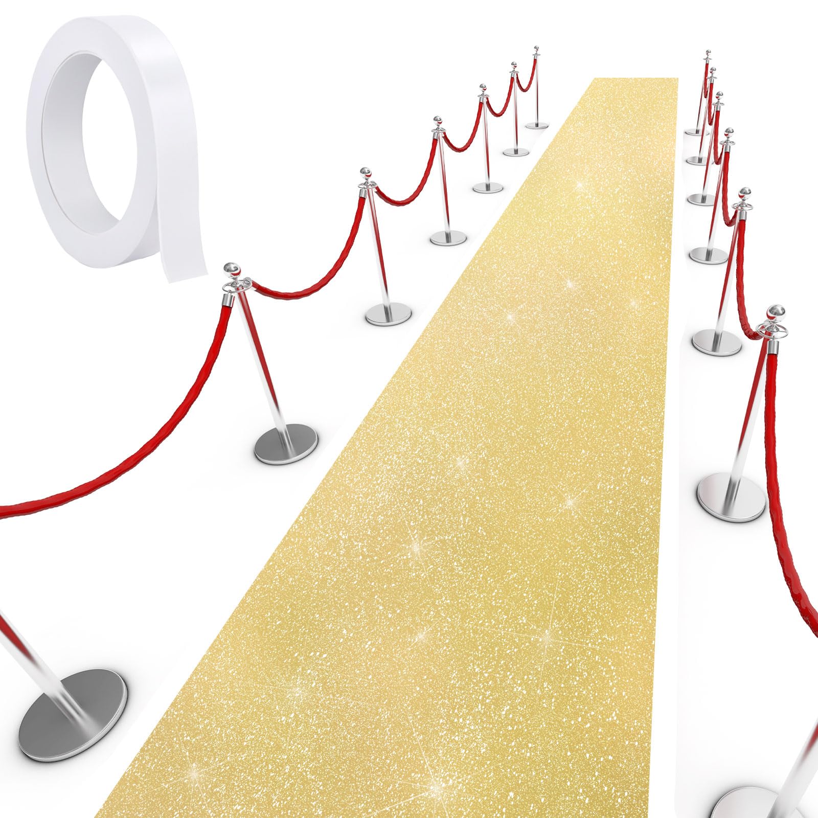 Features: Add elegant atmosphere: You can apply the carpet runner at a church, gymnasium, ballroom, or just a hallway to improve the decoration of the normal place, adding elegant atmosphere. Firmly fix: The carpet tape included can well fix the runway rug to avoid the easy slip for people, making sure the smooth running of the event. And the carpet has enough thickness to keep soft feeling when you walk on it. Specification: Main material: polyester Color: gold Size: 2.46 x 16.4 feet Package included: 1 x Glitter carpet pad 1 x Carpet tape Notes: Please allow a little error on the size due to manual measurement. The color might exist slightly difference due to different displays.