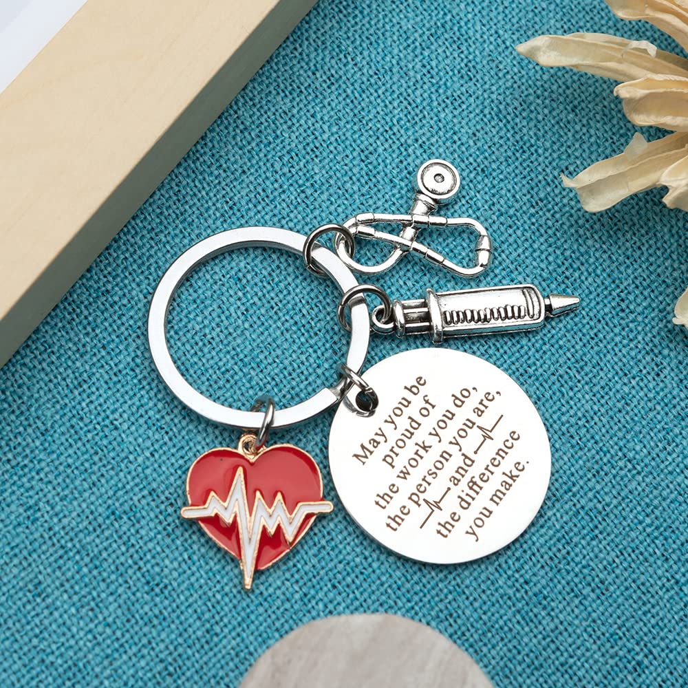 【Gifts for Nurses】May you be proud of the work you do.the person you are.and the difference you make. Doctors and nurses are a great and sacred profession. Give this inspirational keychain to friends who are doctors nurses or medical students. Stainless Steel Keychain with Stethoscope Syringe Pendant.