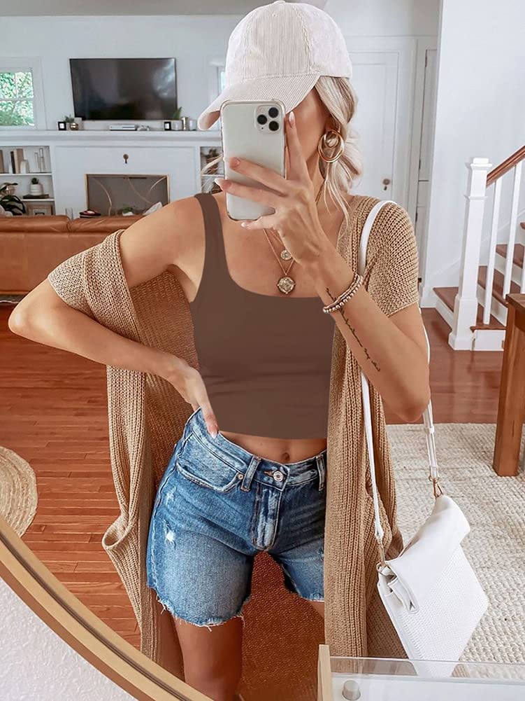 🌸Versatile,can be worn in many different ways!This square neck crop top for teen girls/women is basic and chic.Cute with yoga pants, joggers,skirts or high waist jeans!