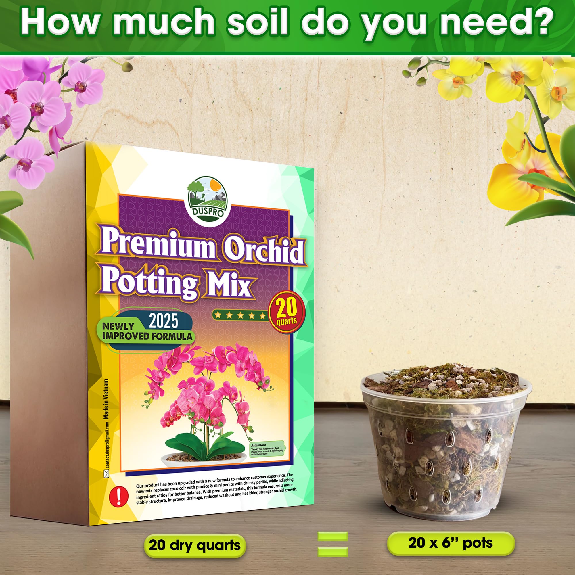 💡🍀 𝐏𝐑𝐄𝐌𝐈𝐔𝐌 𝐂𝐀𝐑𝐄 𝐅𝐎𝐑 𝐎𝐑𝐂𝐇𝐈𝐃𝐒: With years of expertise in indoor plant care, we have crafted a specialized blend using dried forest moss, pine bark mulch, pumice, and chunky perlite to create an optimal growing medium for orchids. Duspro orchid potting mix supports various orchid varieties, including Phalaenopsis, Cattleya, Vanda, Miltonia, Dendrobium, and Cymbidium, fostering strong roots and vibrant blooms.
