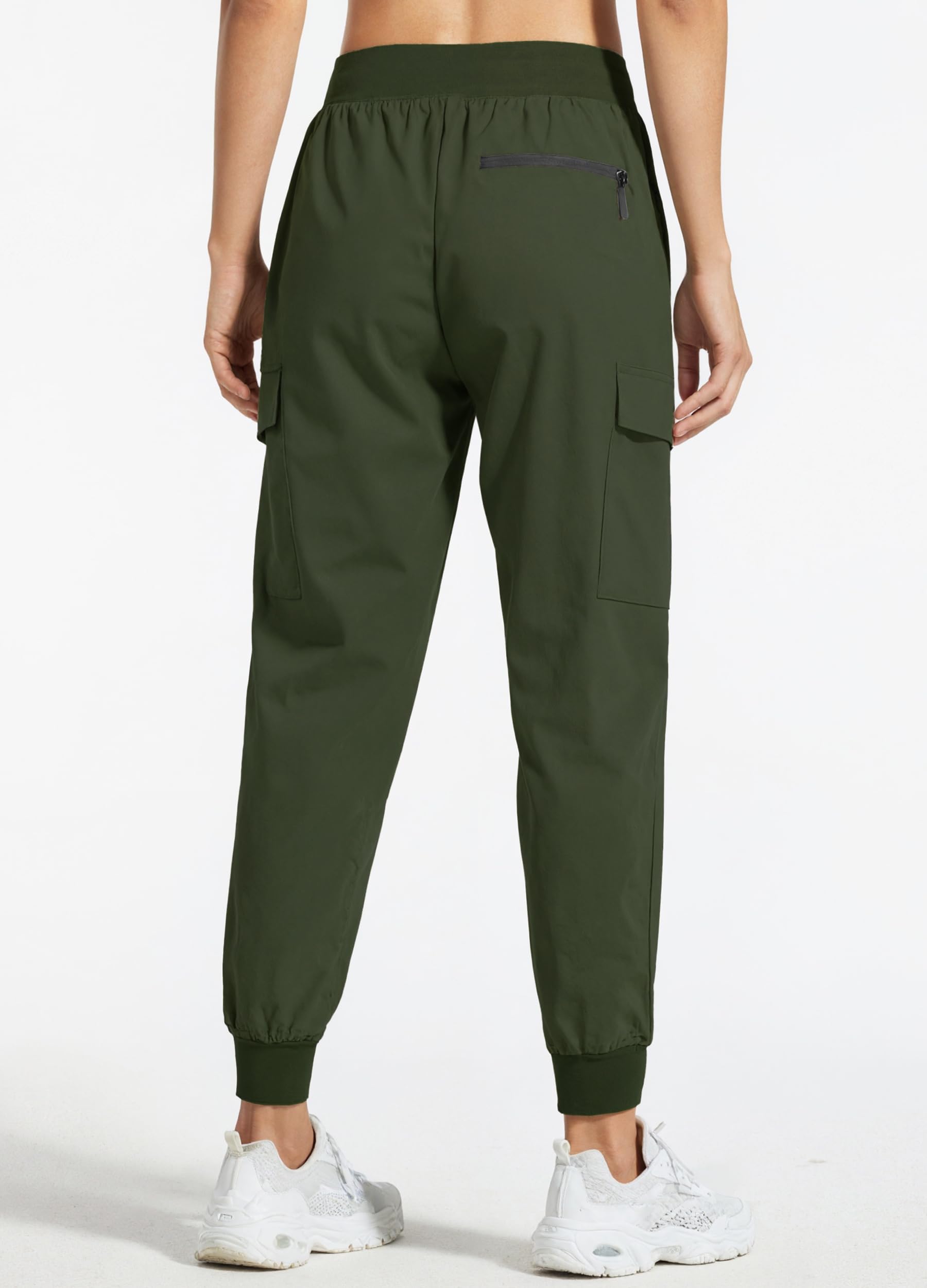 Elastic wasitband with drawstring for a adjustable fit. Stretchy ankle cuffs for a sporty look and easy wear