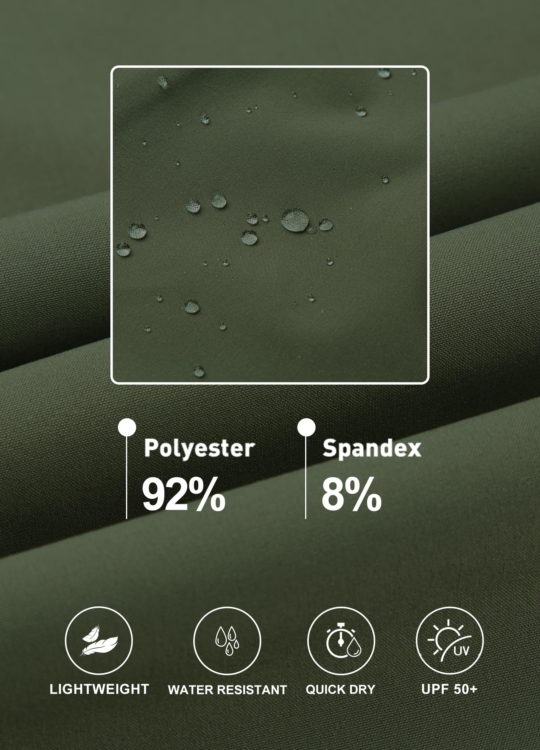 UPF 50+ treatment provides excellent UV protection. Water resistant capacity helps resist light moisture