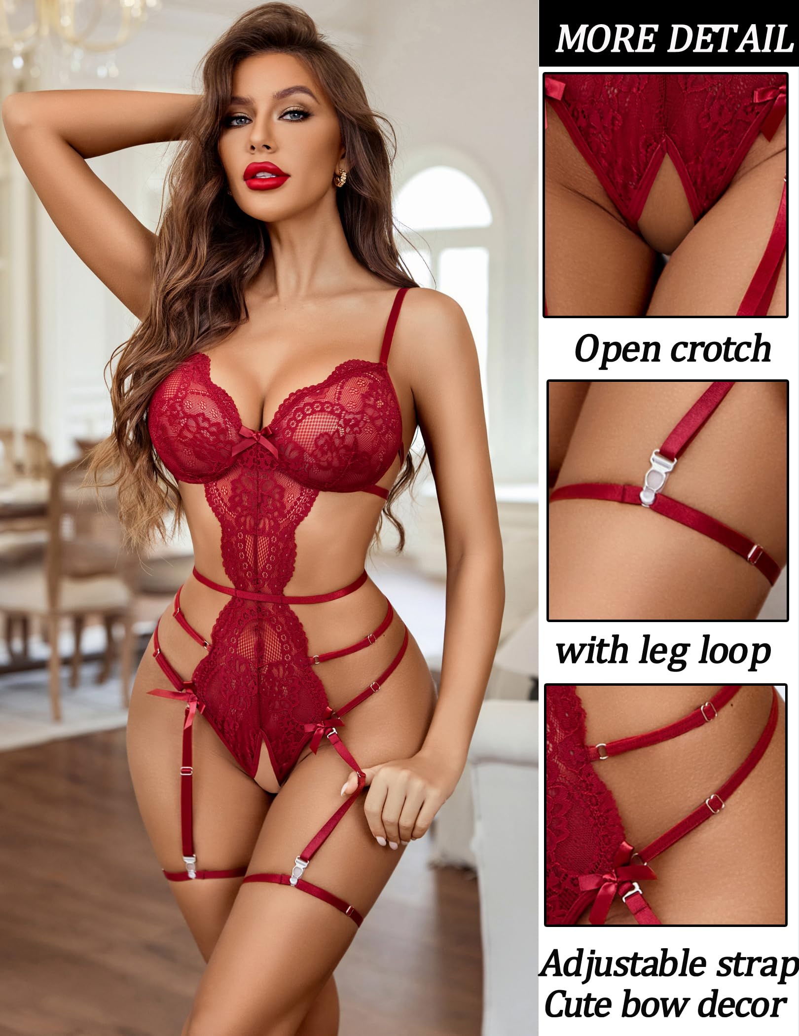 DETAIL: Delicate lace fabric, combines comfort and feminine allure. Special crotch bodysuit lingerie is easy access design for intimate moments