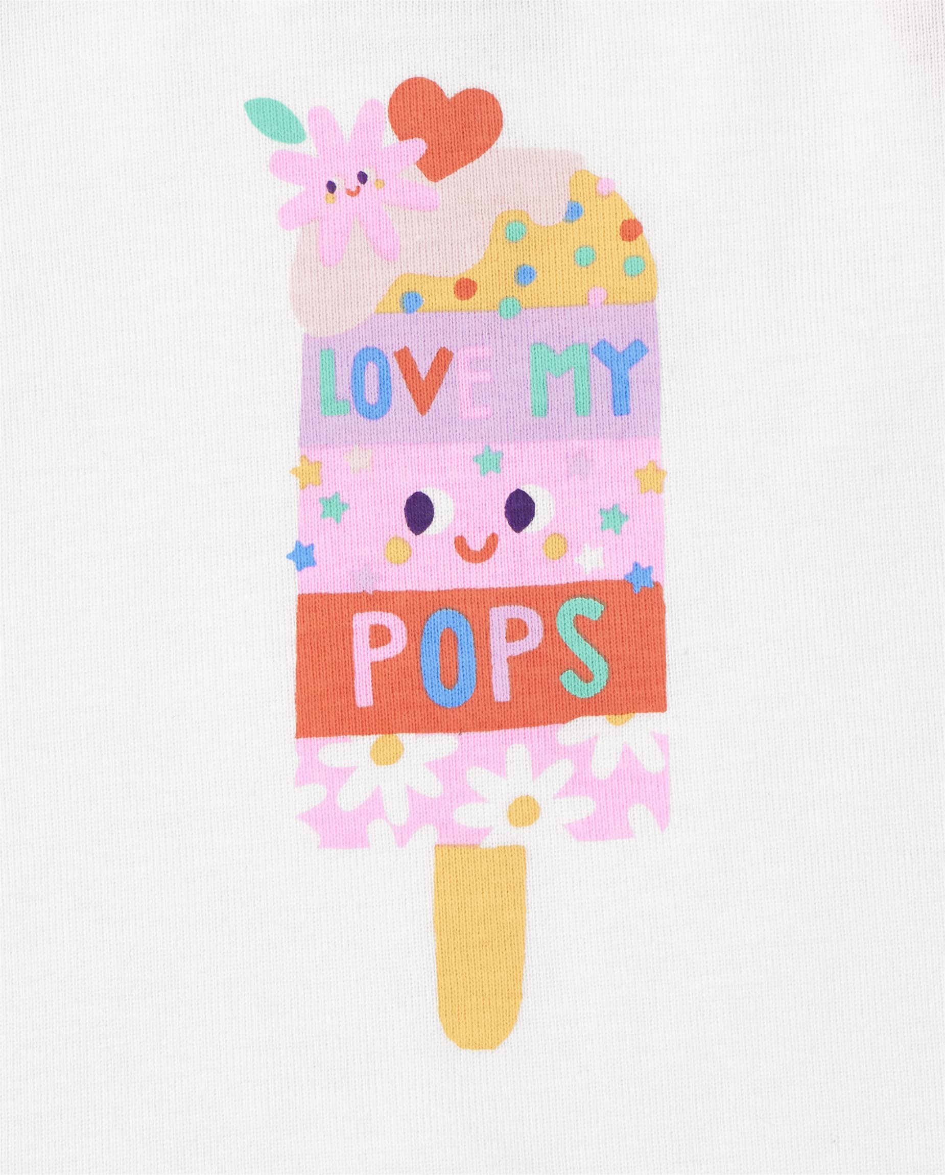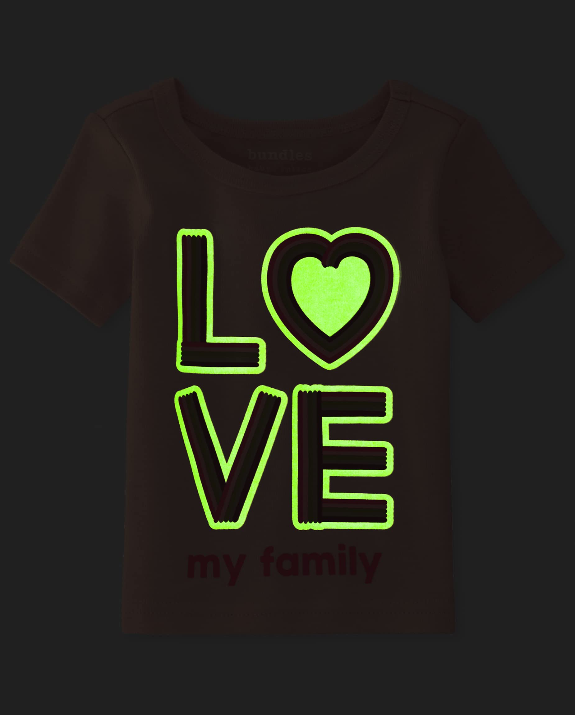 PAJAMA TOPS — 1 short sleeve top with 'Love My Family' graphic design at front glows in the dark; 1 sleeveless top with 'Love My Pops' and popsicle graphic design at front. For best glow effect, expose to light before wearing
