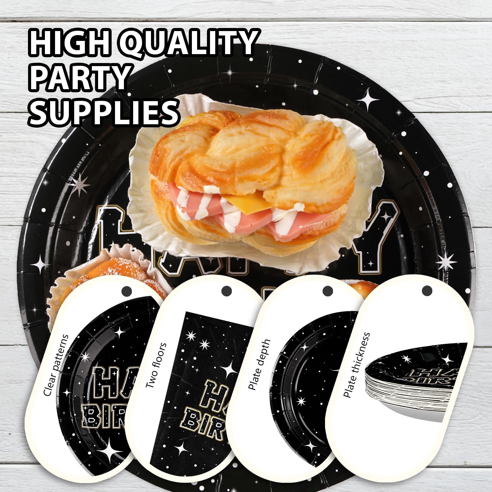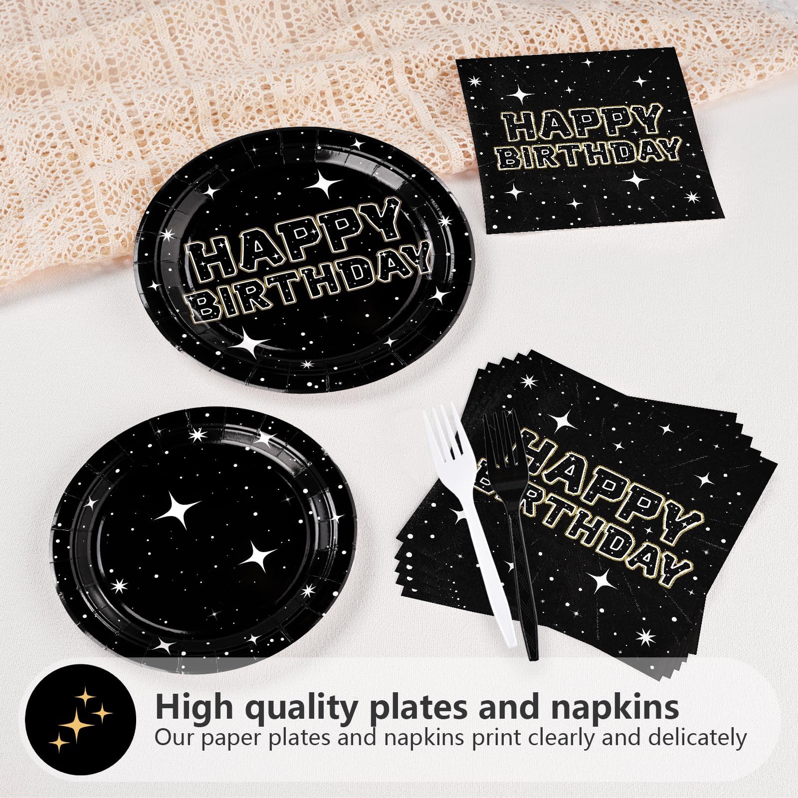 【Applicable Occasions】Our black stars party supplies decorations tableware set is perfect for birthday party,baby shower,mens birthday,star party,boys birthday party or space theme party decorations.Our black stars party decorations can add a warm and lively atmosphere to various themed related activities, making the celebration more unforgettable and meaningful