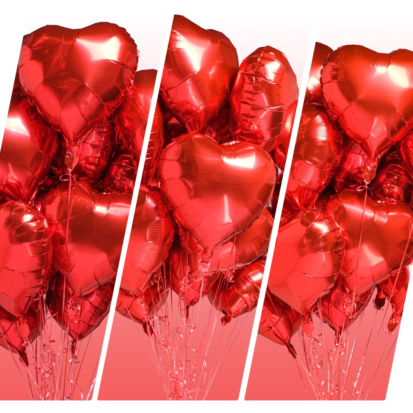 đâăPackage Includedă30 Pcs x Red 18 inch Heart Shaped Foil Balloons, 198 ft red balloon ribbon, Helium Support.