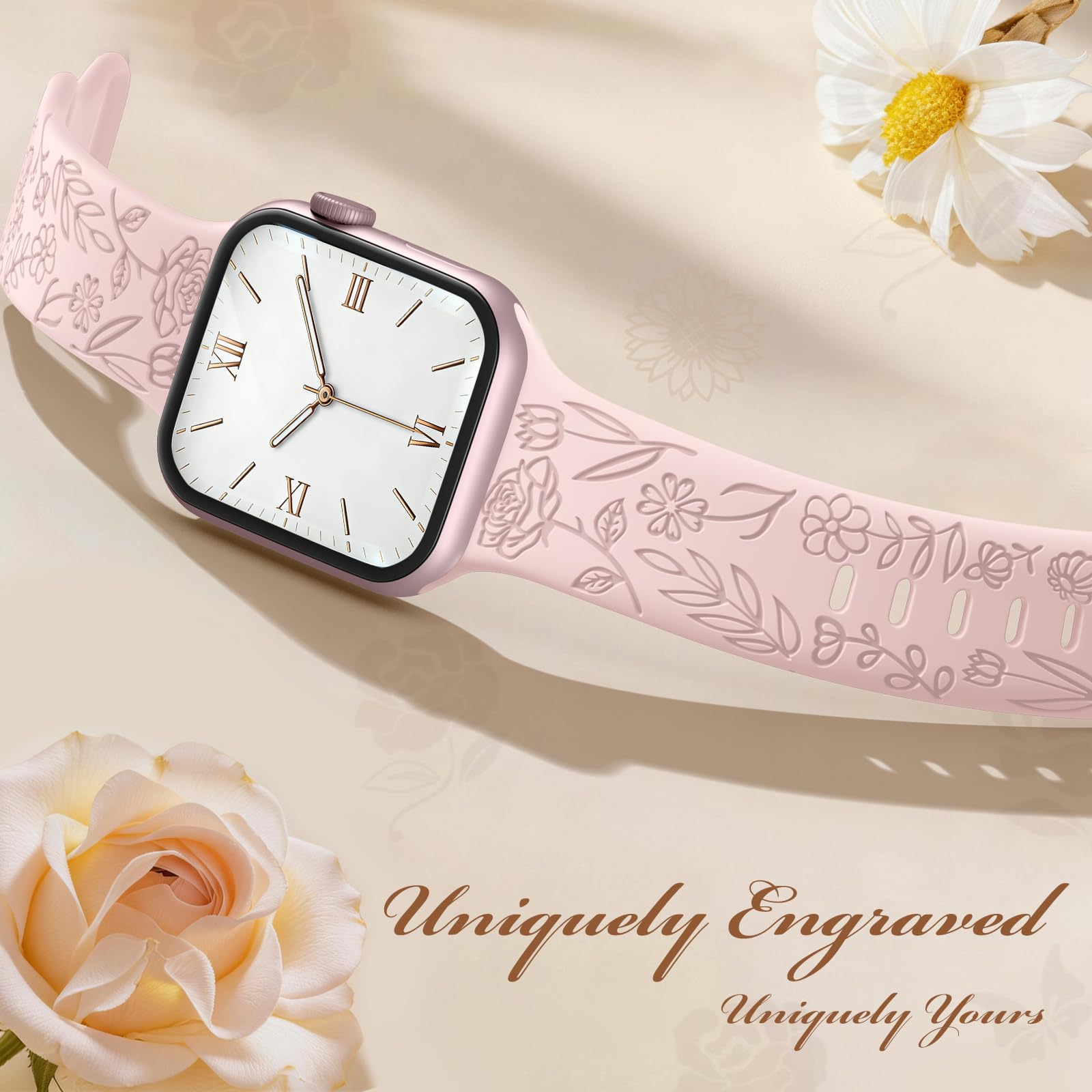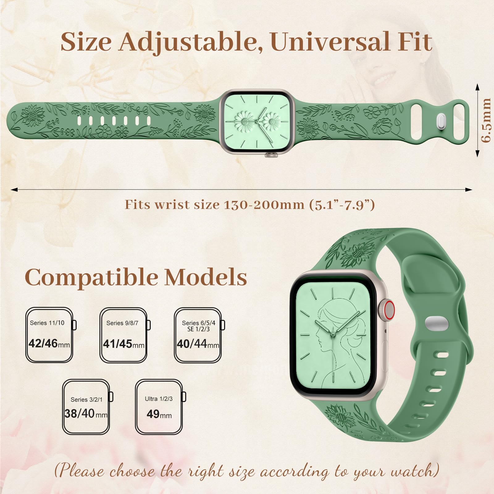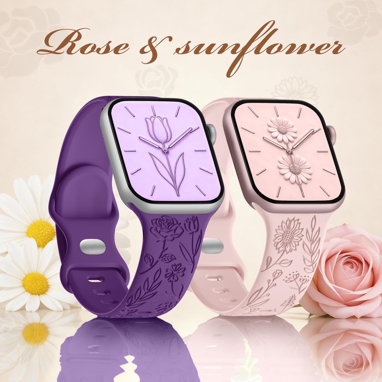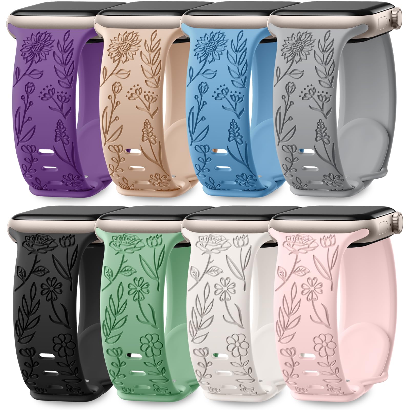 ✅ Floral Elegance for Your Apple Watch: Elevate your Apple watch style with our 8 pack floral engraved iWatch bands. Featuring intricate rose and cheerful sunflowers, they combine expert craftsmanship with trendy colors. Perfect for formal elegance and a touch of modern flair for casual wear