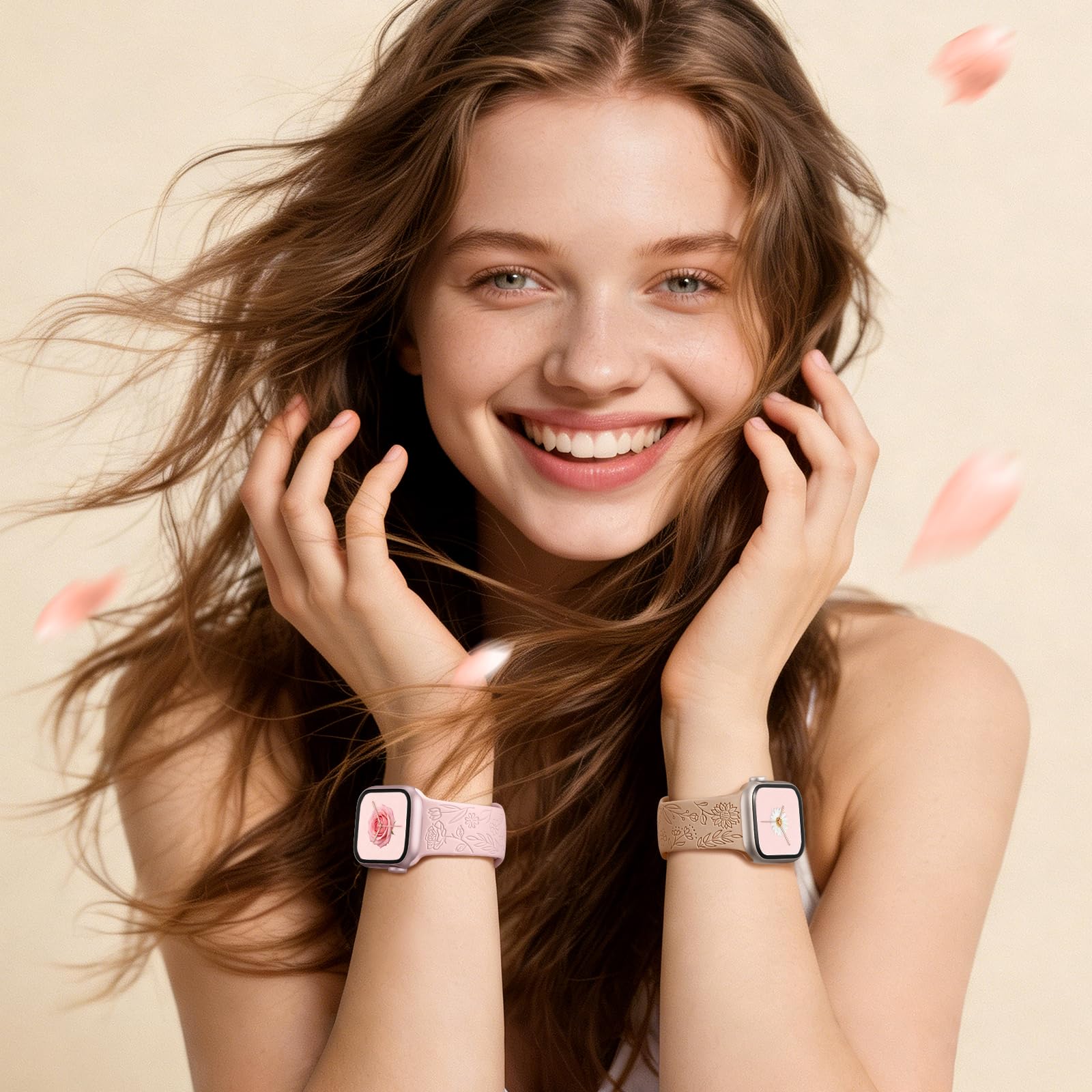 ✅ Soft & Smooth Silicone Comfort: Our floral bands are crafted from high-quality silicone, offering skin-friendly and exceptionally comfortable wear during workdays, workouts, and overnight sleep. These waterproof, lightweight, and durable straps provide an affordable yet premium accessory option for your Apple watch