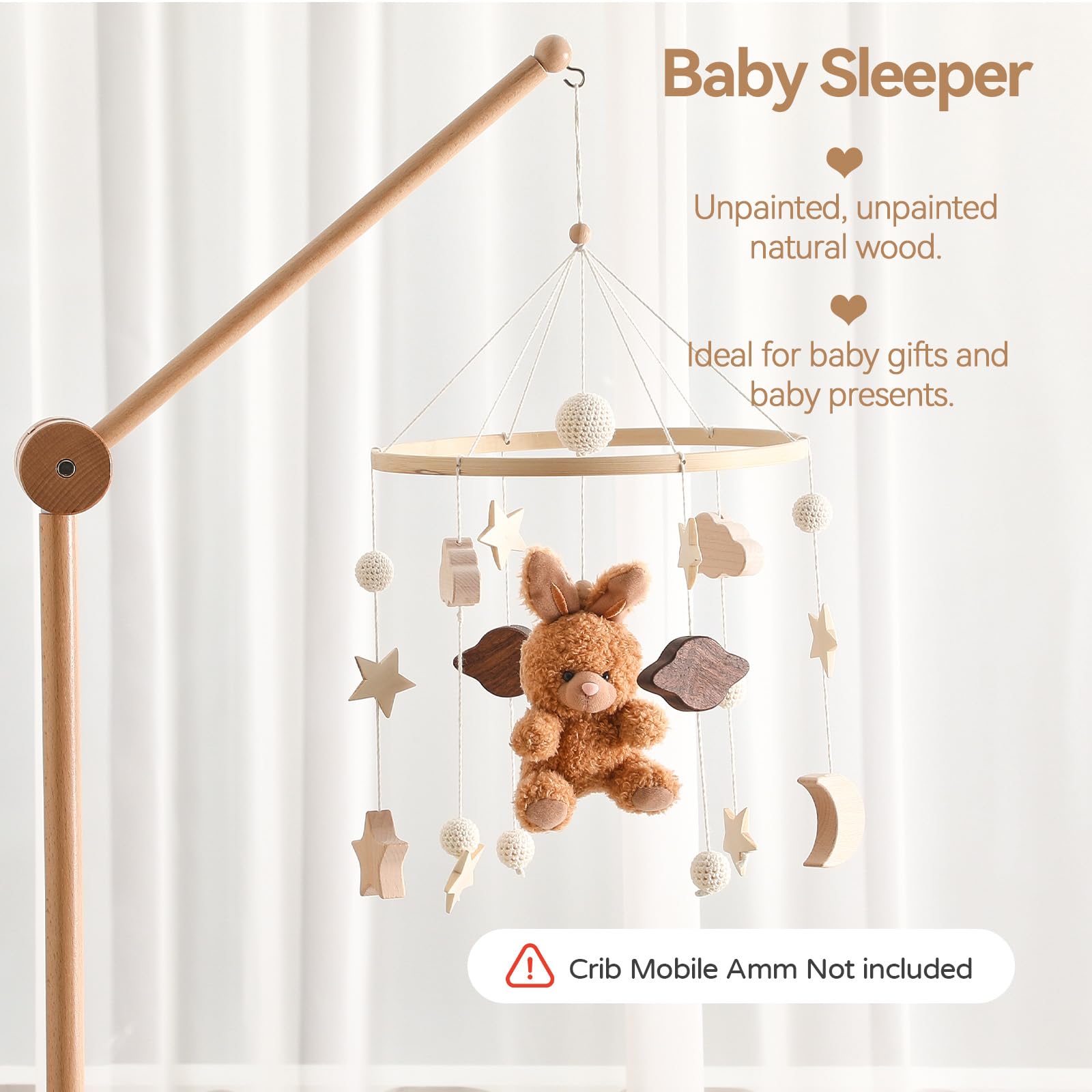 Boho Nursery Mobile:Baby mobile for crib can blend into the nursery design of your choice. The brown bunny and natural wood will be focal points in your neutral nursery,We share your goal to making sure your baby is exposed to something nice and safe from birth.
