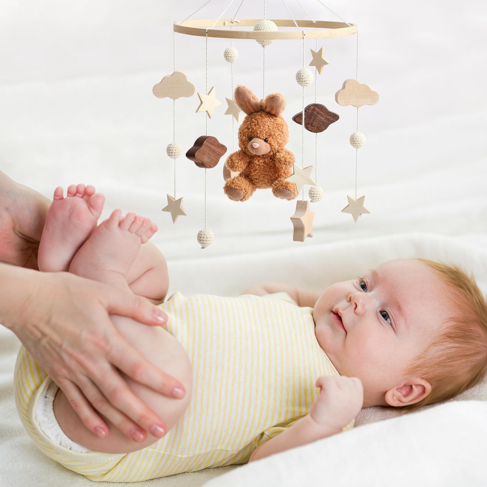 Premium Material & Handmade:This baby mobile is made of soft teddy velvet and natural wood,100% Eco-Friendly. Each piece is attached to a sturdy string and hand-tied, which is safe and durable.