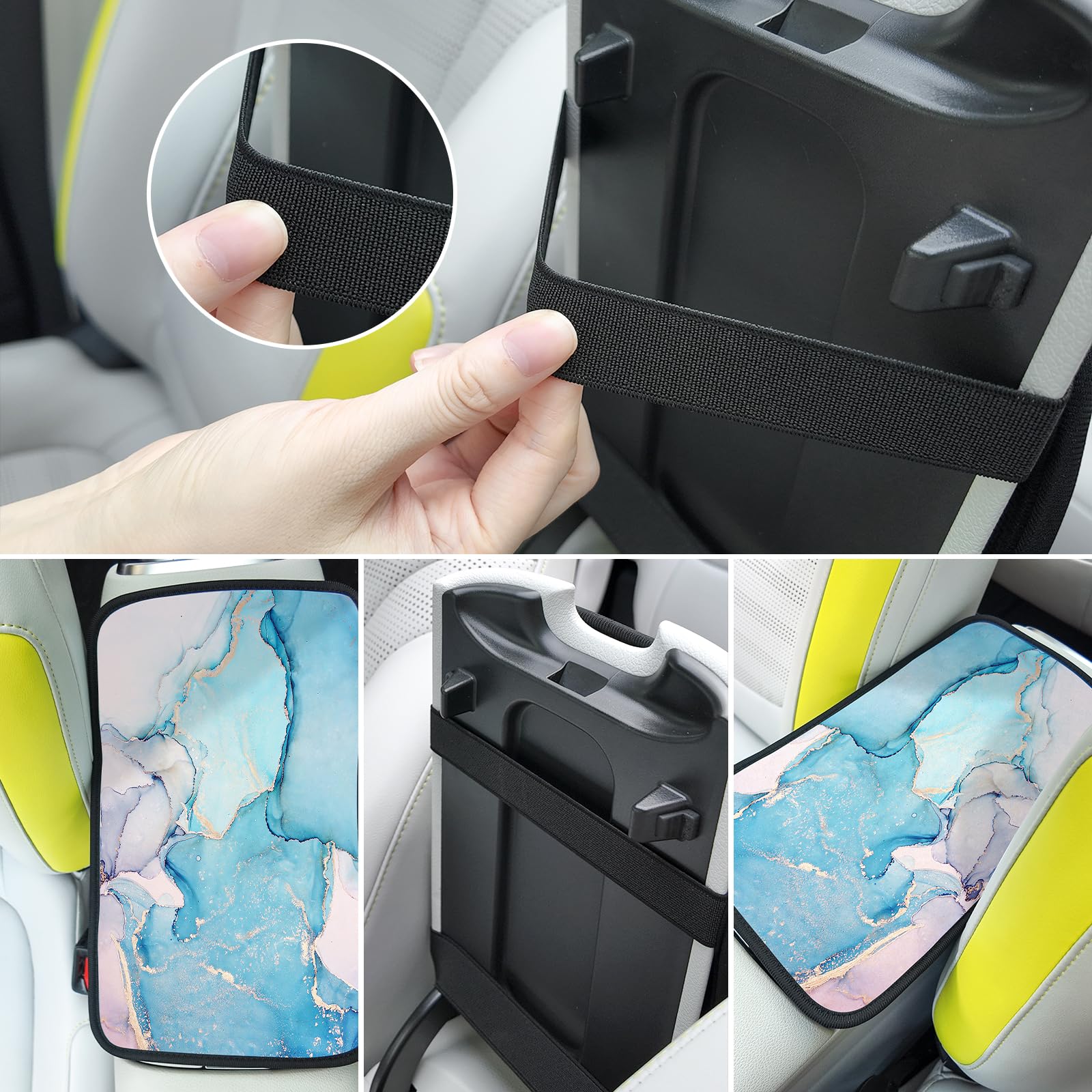 【EASY INSTALLATION】Armrest cover is designed with two elastic straps on the back, easy for you to adjust during installation, and can be fixed on the center console without any tools.