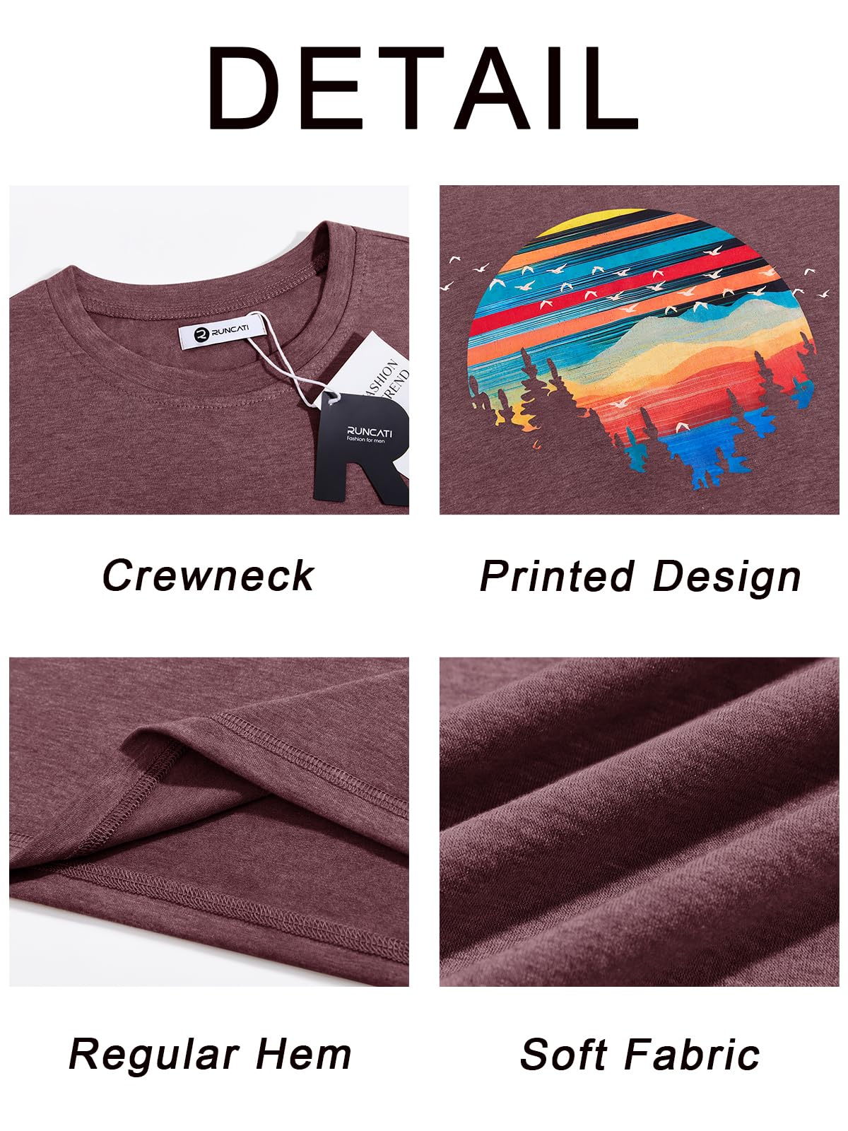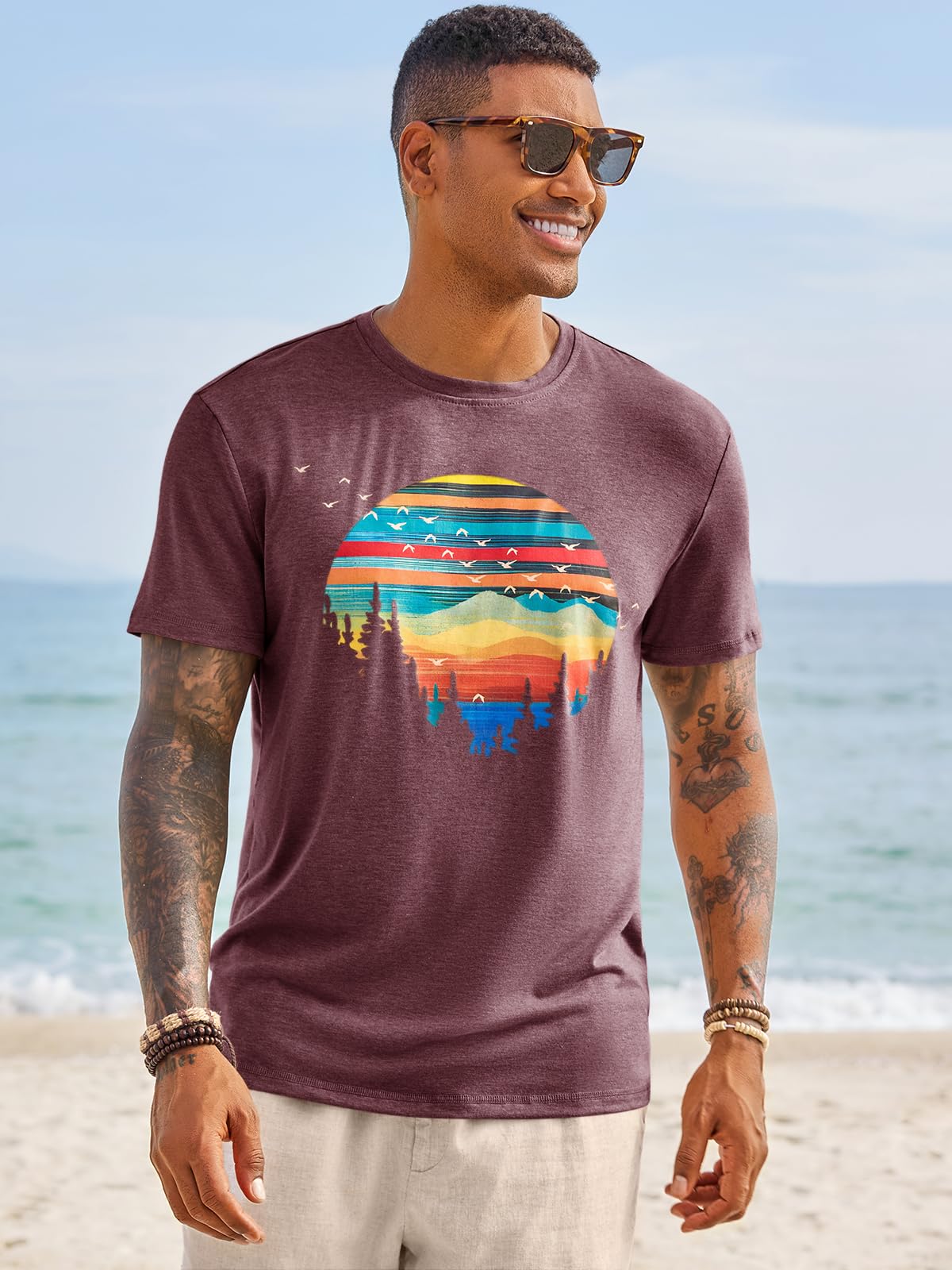 【Features】: Mens summer tshirts are feature with short sleeve, round neck, solid color with geometric nature sunset printed, that add a timeless and versatile style to these t-shirts, and loose fit style give you more relaxed and freedom