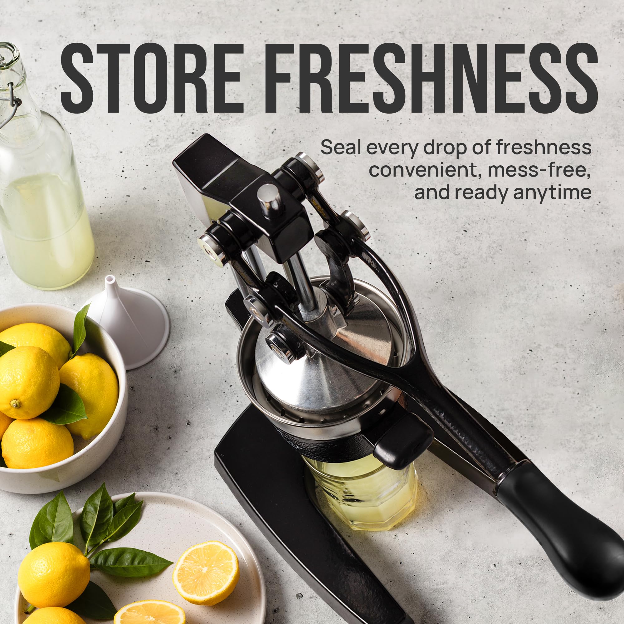 STURDY AND DURABLE MATERIAL: This manual juicer is made of heavy-duty cast iron that can easily withstand the pressure from continuous pressing for years to come. The leverage mechanism allows a one-time easy pull to get all the juice out. Our citrus press is designed with a heavy rubberized base to firmly keep it in place without the fear of falling tipping or sliding off the counter. This hand juicer is great for both professional and at-home use