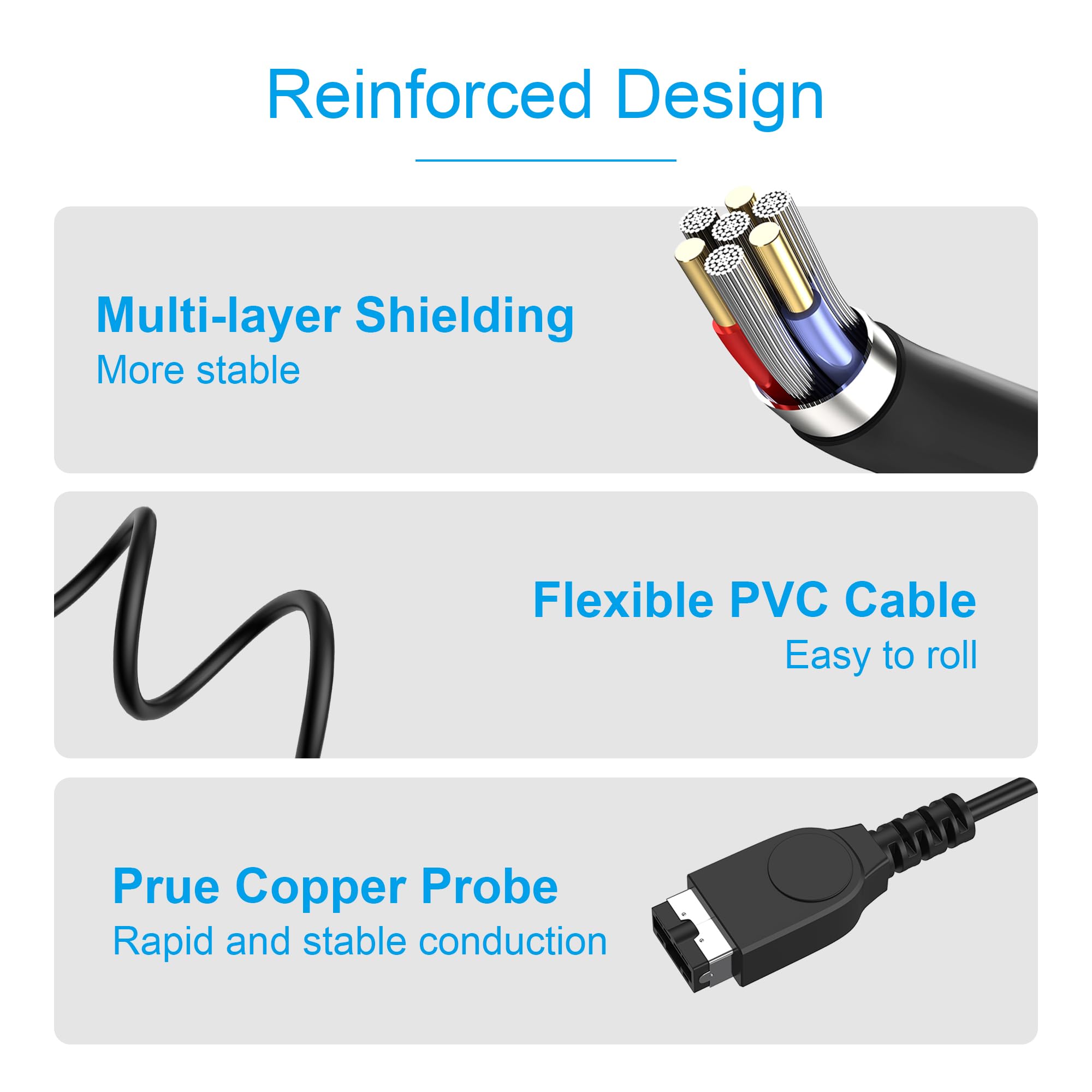 Safe and Sturdy: GBA SP usb charger cable with built-in overheating, short-circuiting and overcharging protection; adopts thickened PVC material, passes 1000+ bending tests - 3X more sturdy than basic gba charger cables