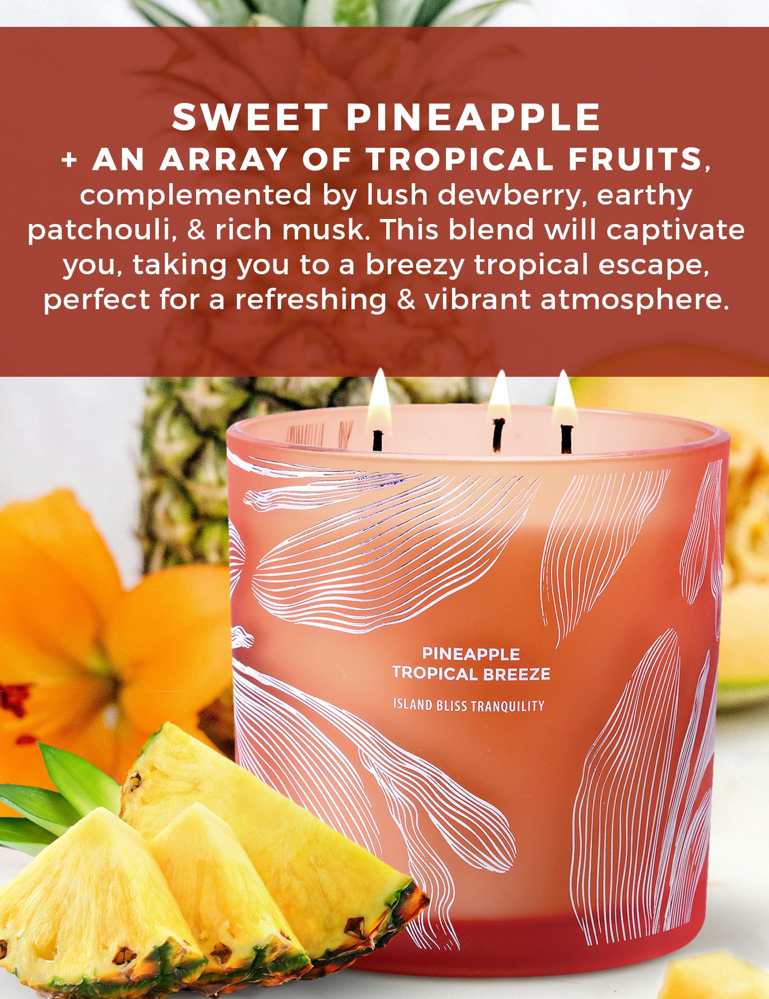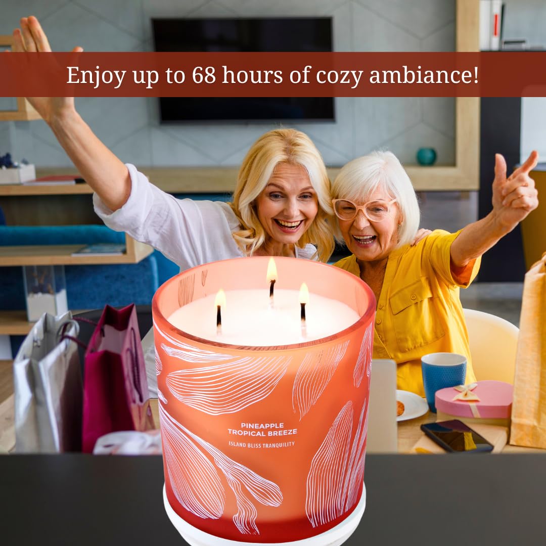 🎁 3 Wick Candle Gifts for Women and Men: Our Pineapple Tropical Breeze candle is a heartfelt self-care gift, infusing your space with the bright, uplifting aroma of fresh pineapple and tropical fruits, softened by sweet dewberry and a smooth touch of patchouli and musk, crafted from 100% pure soy wax with triple cotton wicks for a clean, slow, and even burn that lasts over 68 hours, creating a tranquil haven through aromatherapy’s calming power, making it a luxurious and deeply thoughtful unisex gift to show someone you care, during birthdays, holidays, or any moment they deserve to pamper themselves.