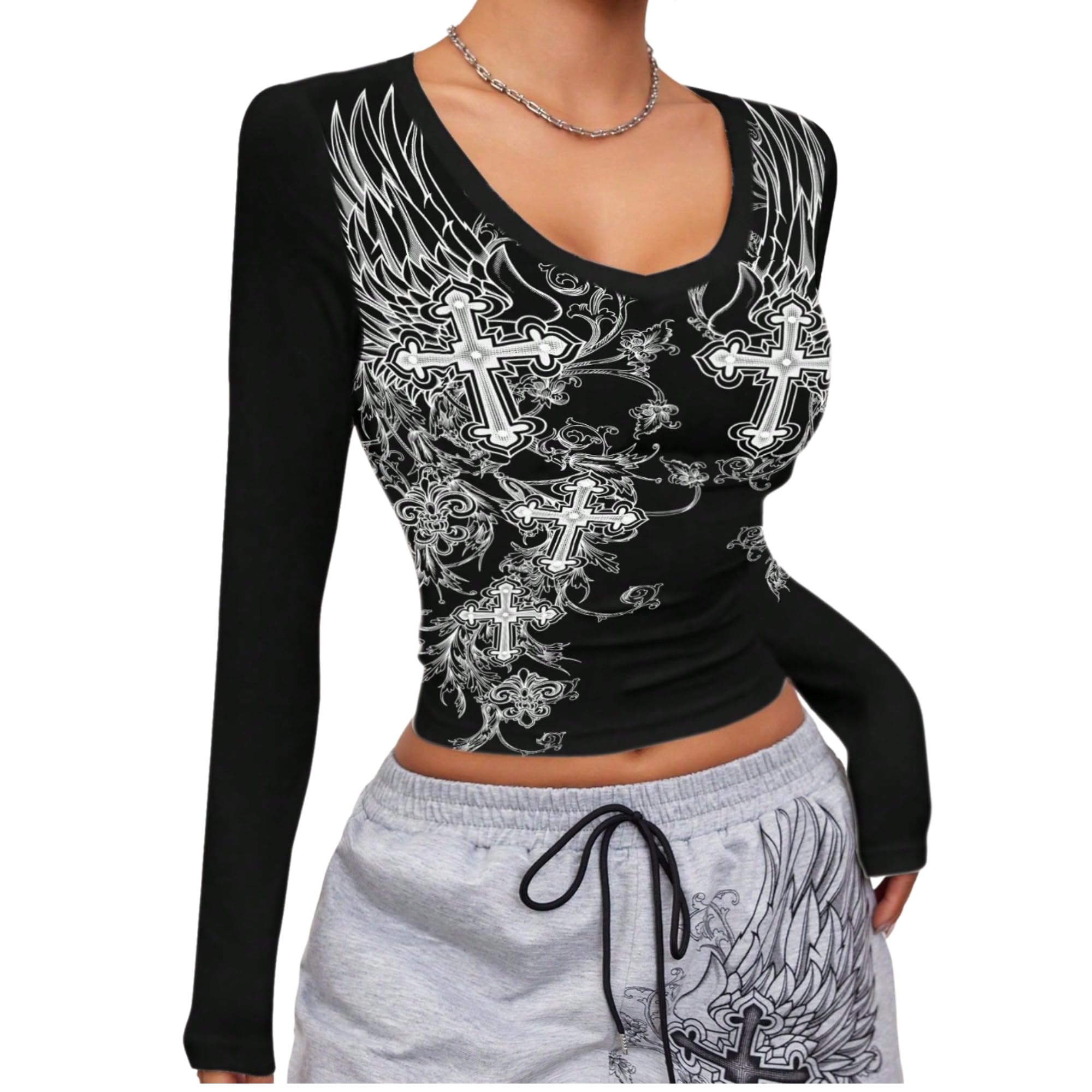 Occasions: long sleeve graphic tees,y2k long sleeve top,long sleeve y2k tops,goth long sleeve top,y2k grunge clothes suitable for casual dailywear. 2000s tops, y2k tops for women, y2k graphic tee, y2k summer clothes, y2k clothing, t shirts for women graphic, graphic tees for women trendy, short sleeve crop tops for women
