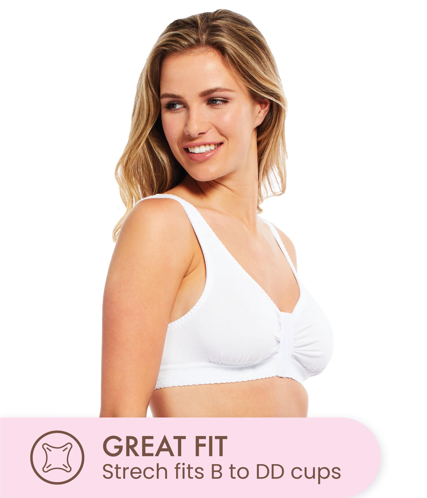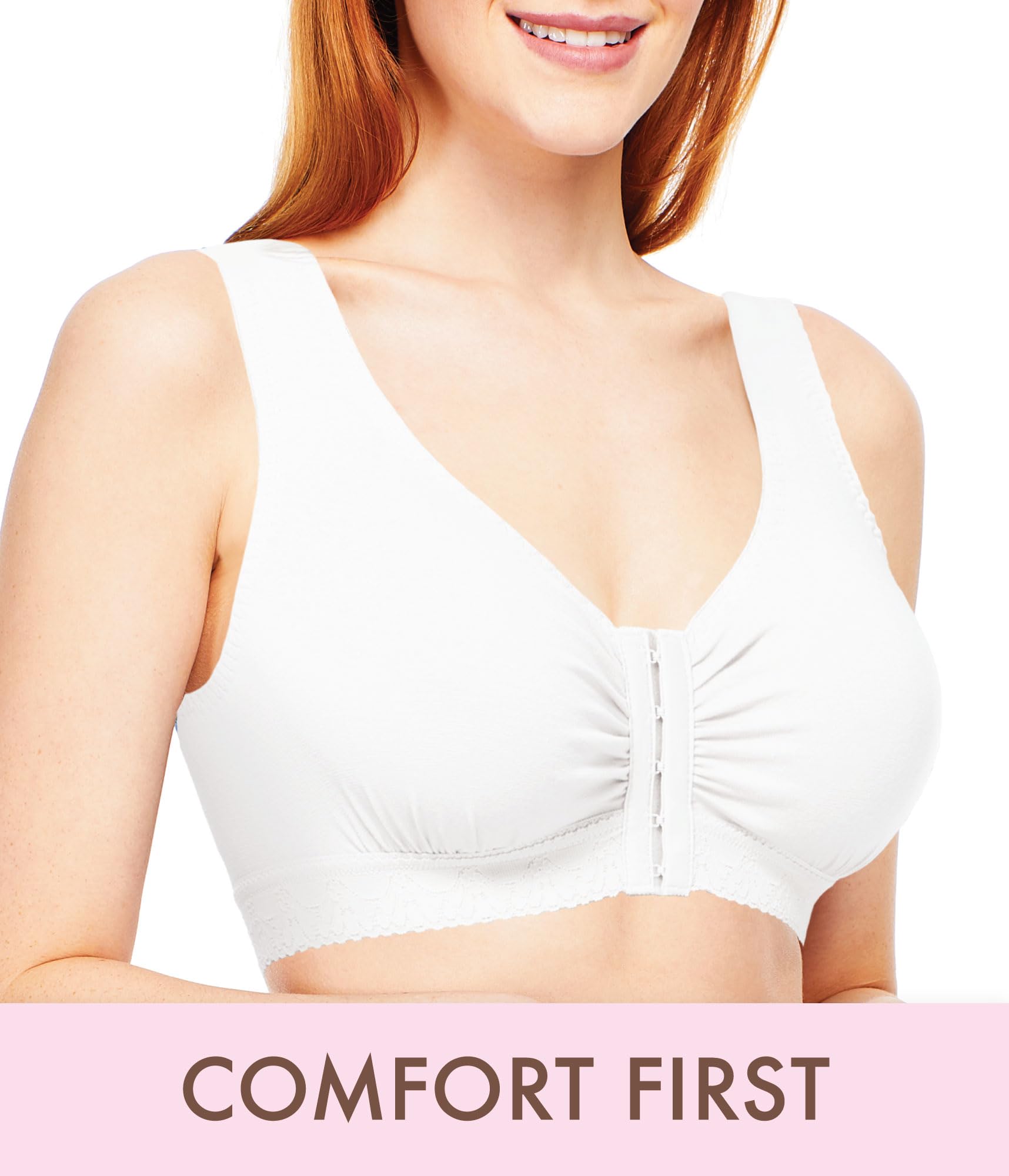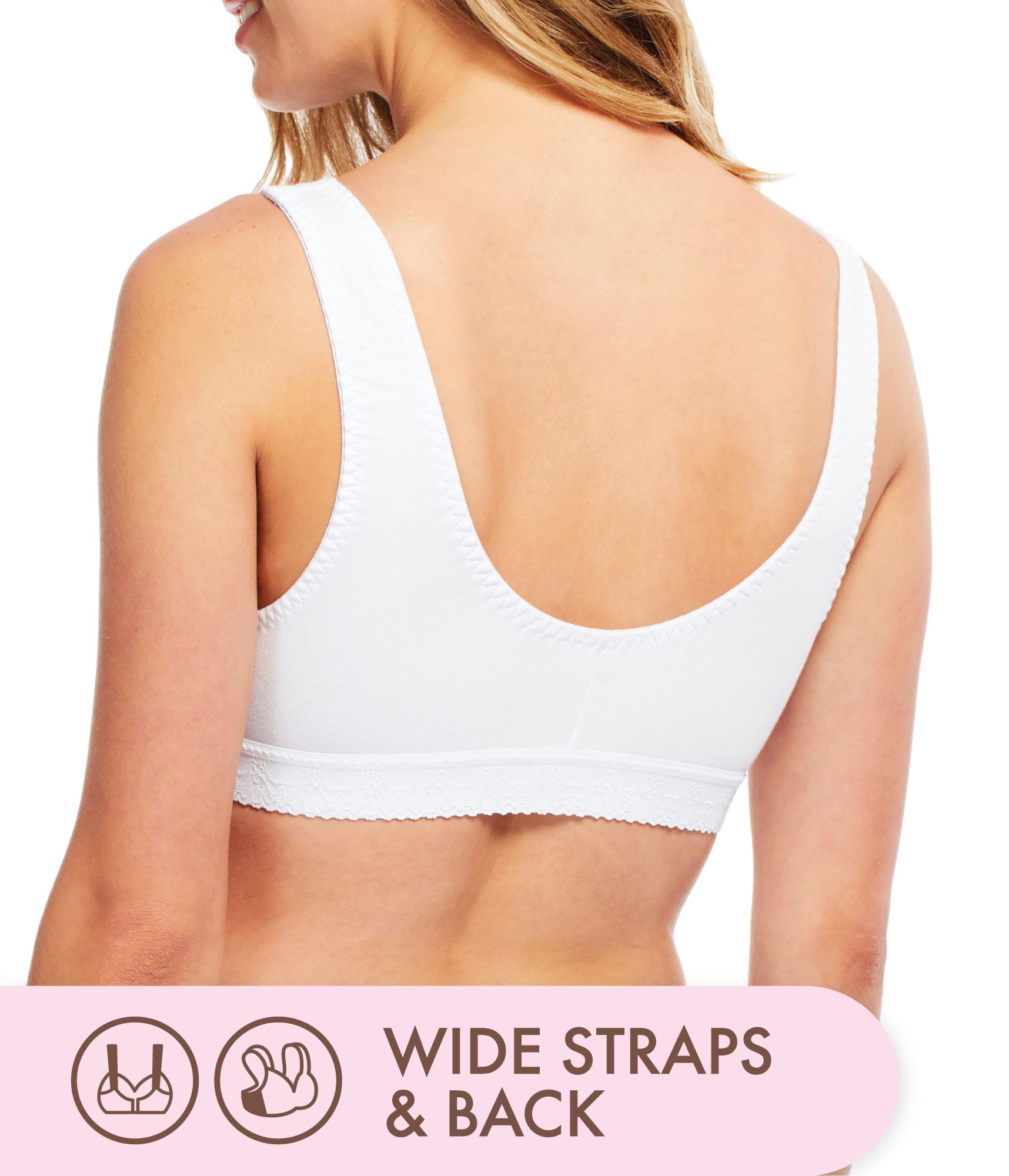 The Original Full-Freedom Cotton Bra, designed for light to medium support, fits B, C and D cups. Un-padded with front hook and eye closure for easy-off convenience
