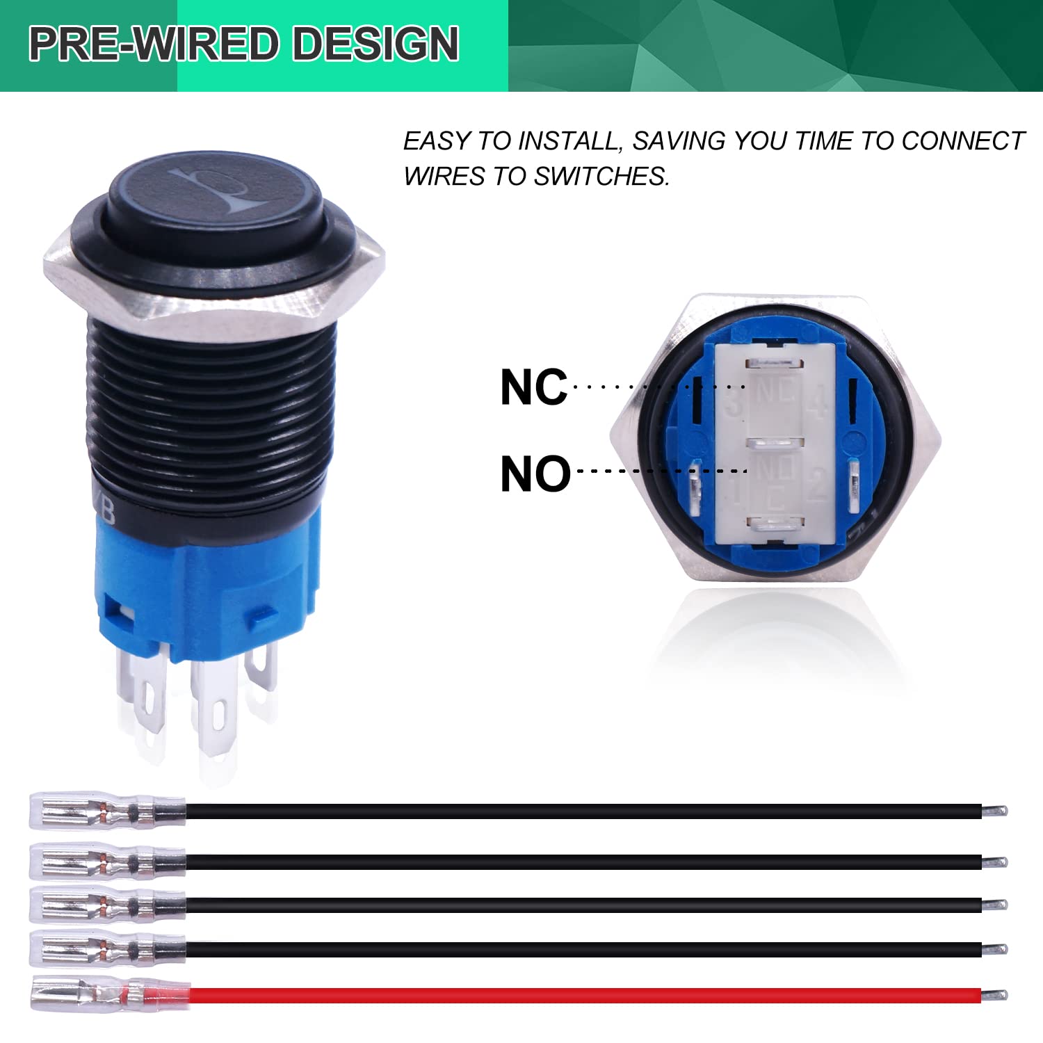 Momentary switch operation type: Push & Hold,ON; Release,OFF;Pre-wired design:easy to install,save your time to connect wire to the switches.