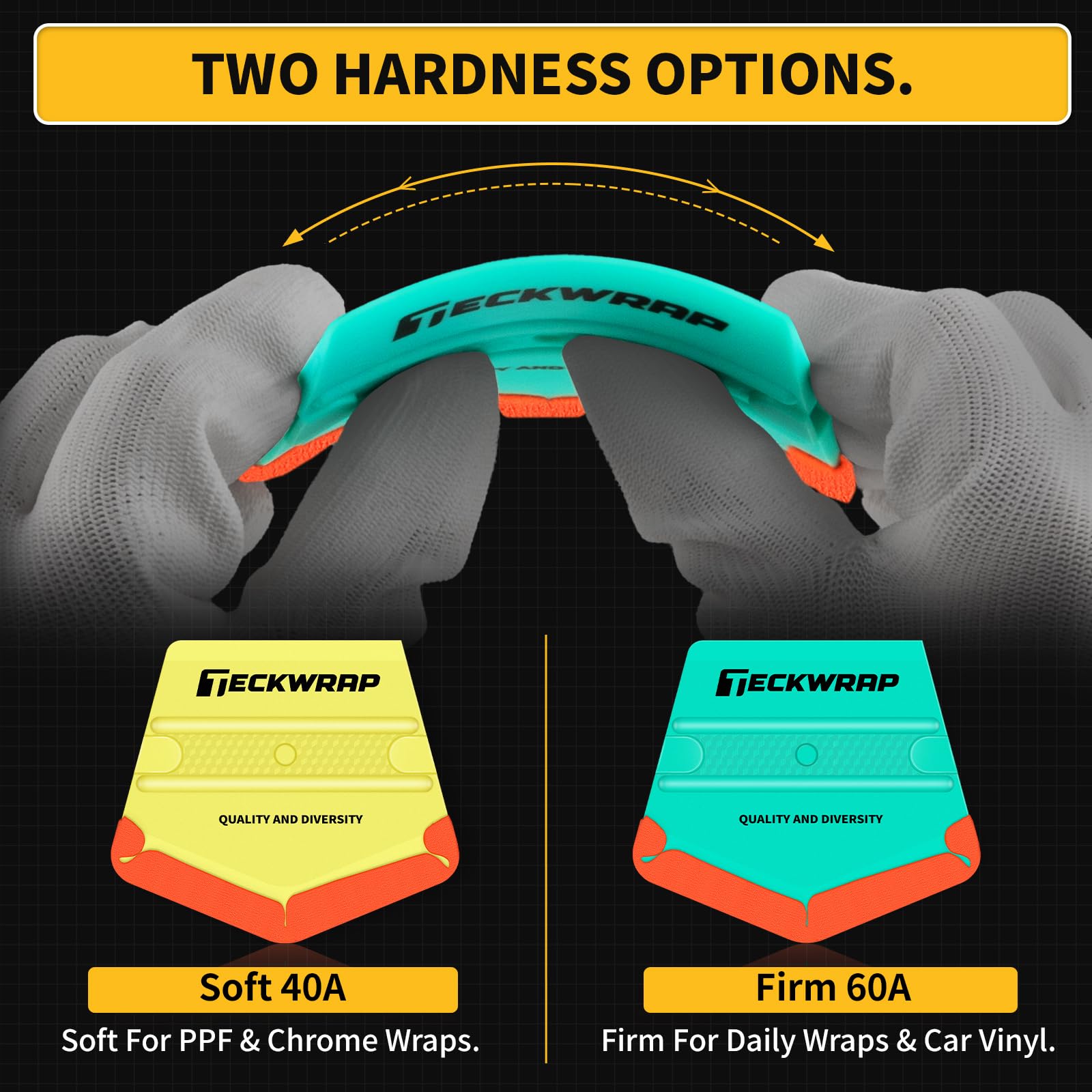 2 Hardness Levels (Soft & Medium): Available in yellow (40A) and blue (50A), allowing you to match the right hardness to the film type. Yellow is softer for PPF and delicate chrome, blue provides more firmness for standard vinyl installs.