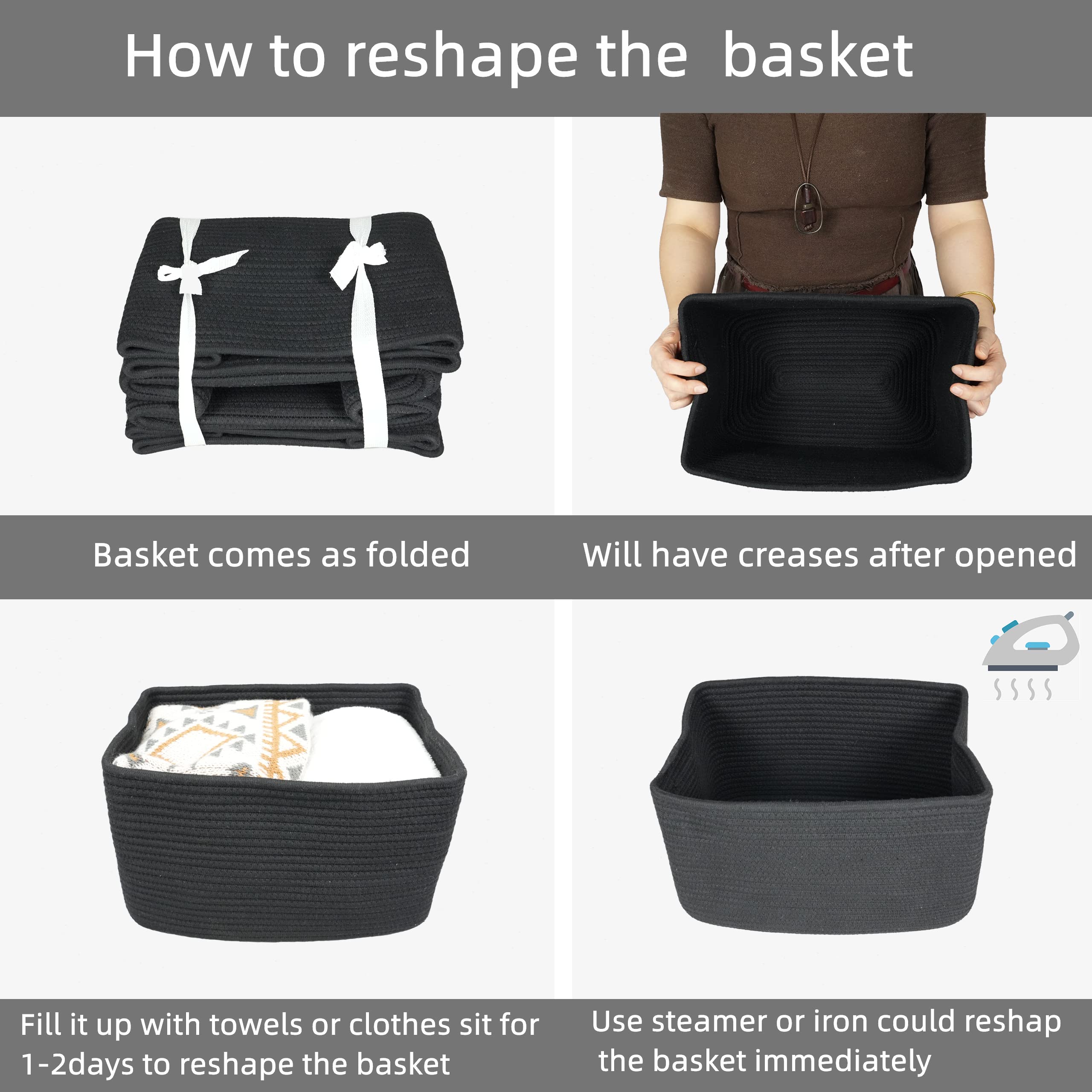 5, Note:Products comes as folded, will have crease. Fully fill the basket with towels or clothes waiting for 1-2 days could reshape the basket. Steaming or Ironing could reshape the basket as well.