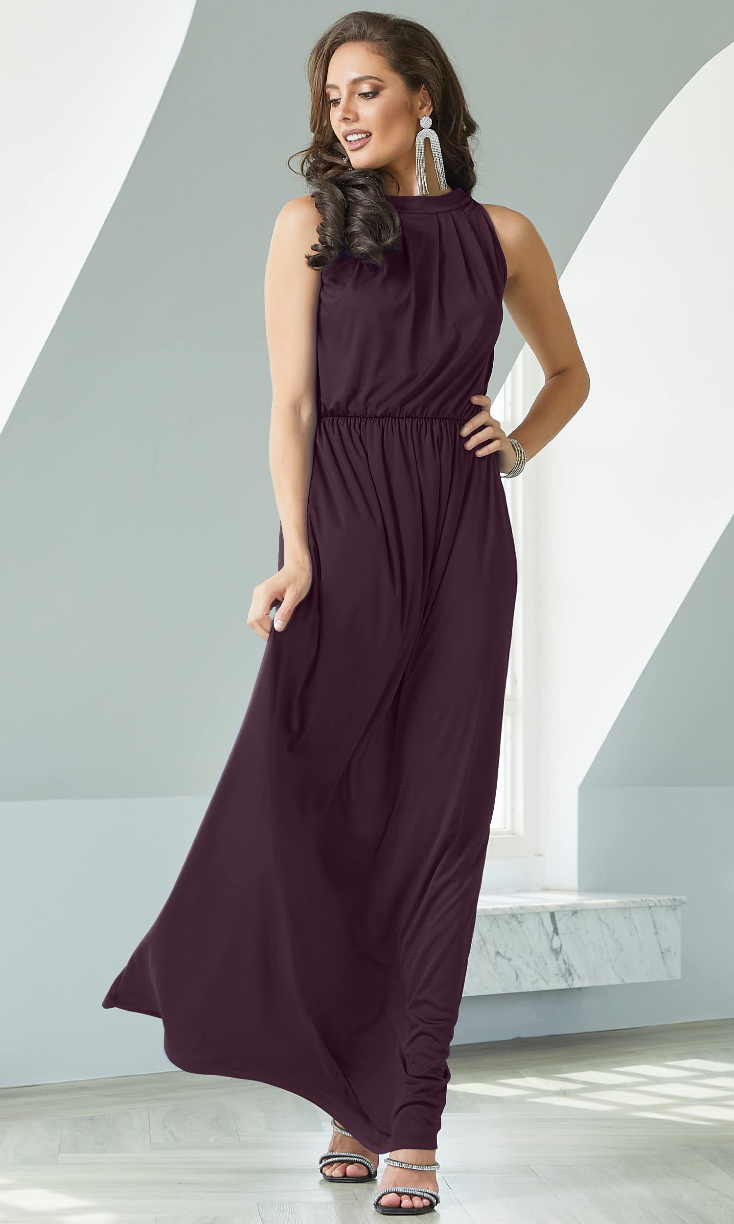 Semi formal maxi dresses; simple outfits; loose fitted Sangria Wine maxi dress; classy full floor length homecoming dress; long pleated Spring vacation travel sundress; solid color office work maxi's; elegant modest black tie or ball gown