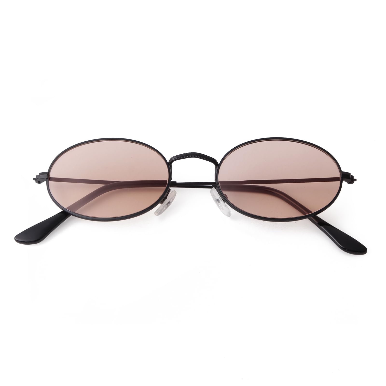 Small Oval Sunglasses Made of Thin Metal Frames Make This Sunglasses Light Weight and Flat,Adjustable Nose Pads Suits for Most Man and Woman Face