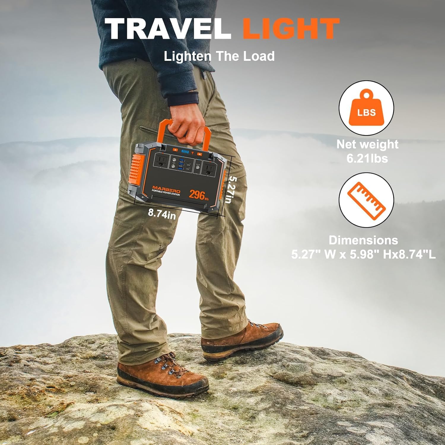 PORTABLE & CONVENIENT: The M638 Solar Generator with Solar Panel is designed for ultimate portability. With its compact size of 8.74 x 5.27 x 5.98 inches and a lightweight design at just 6.21 lbs, it easily fits into your backpack, car, or suitcase. Whether you're camping, traveling, or need a dependable power source for emergencies, the M638 MAX is the perfect companion, providing reliable power.