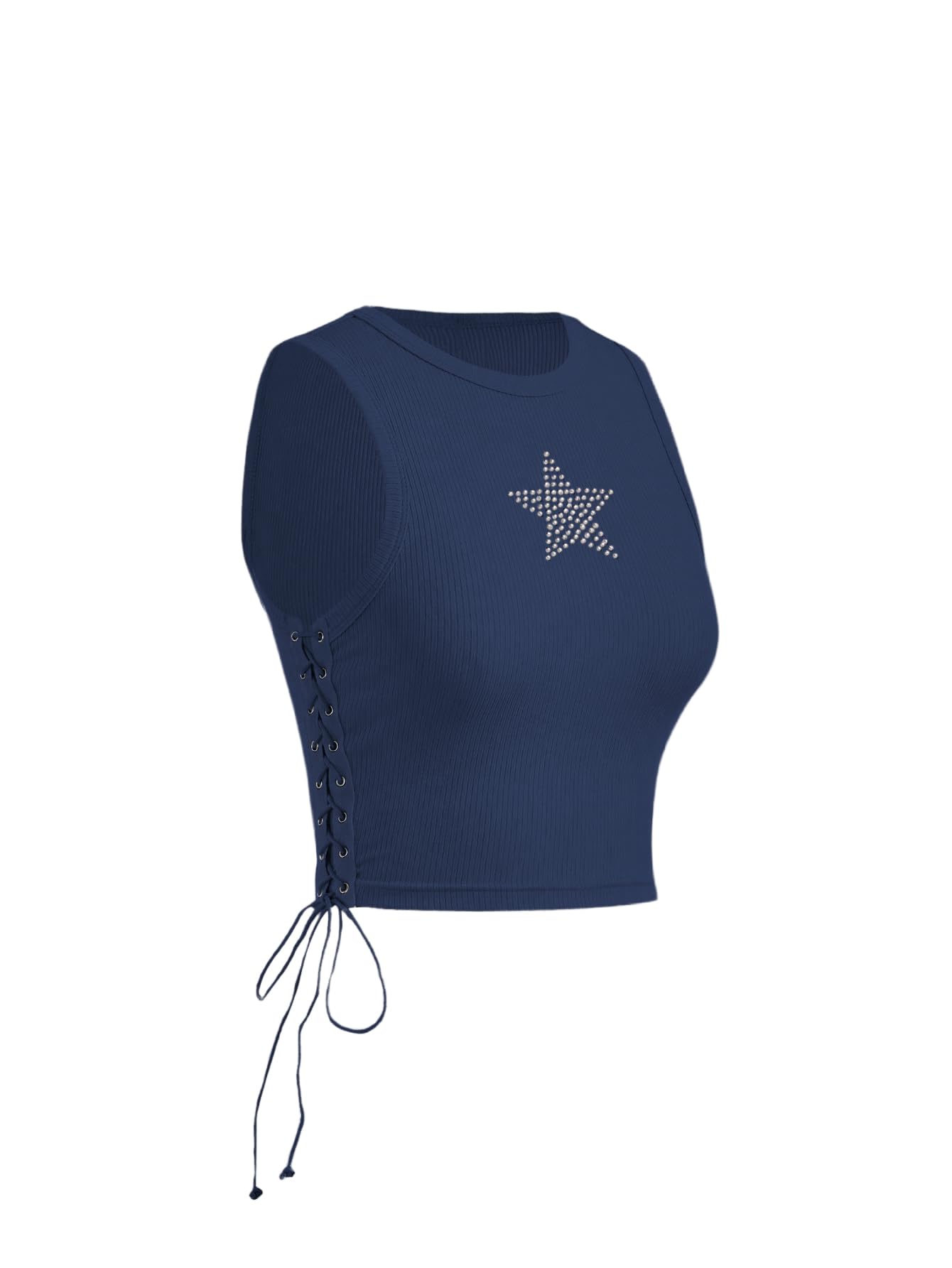 Sleeveless Star Rhinestone lace up slim fit crop tops for women