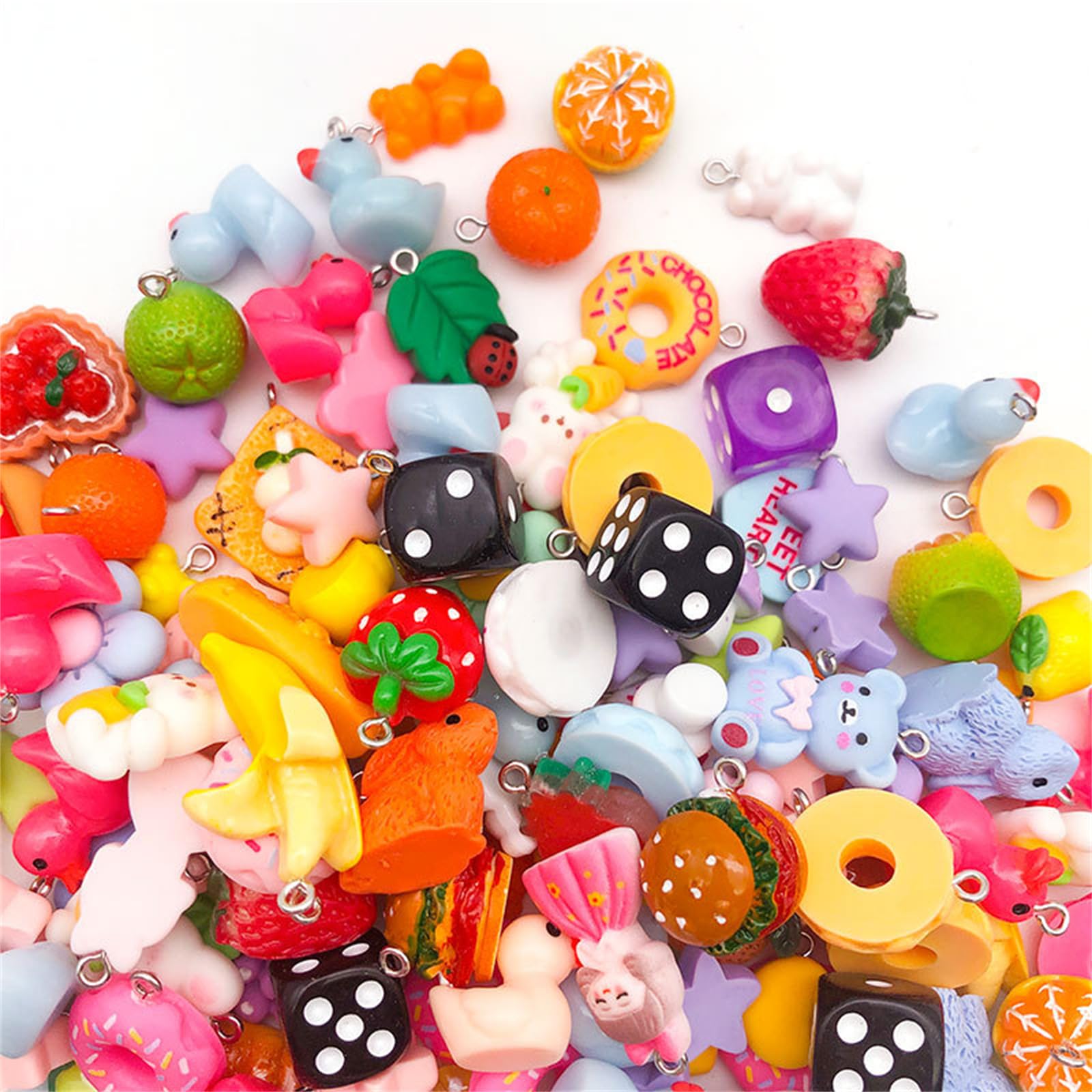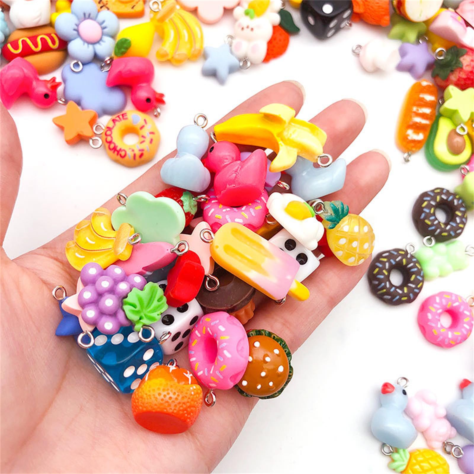 Each pack contains imitation animal, fruit, and food series pendants, crafted from resin for durability and long lasting charm.