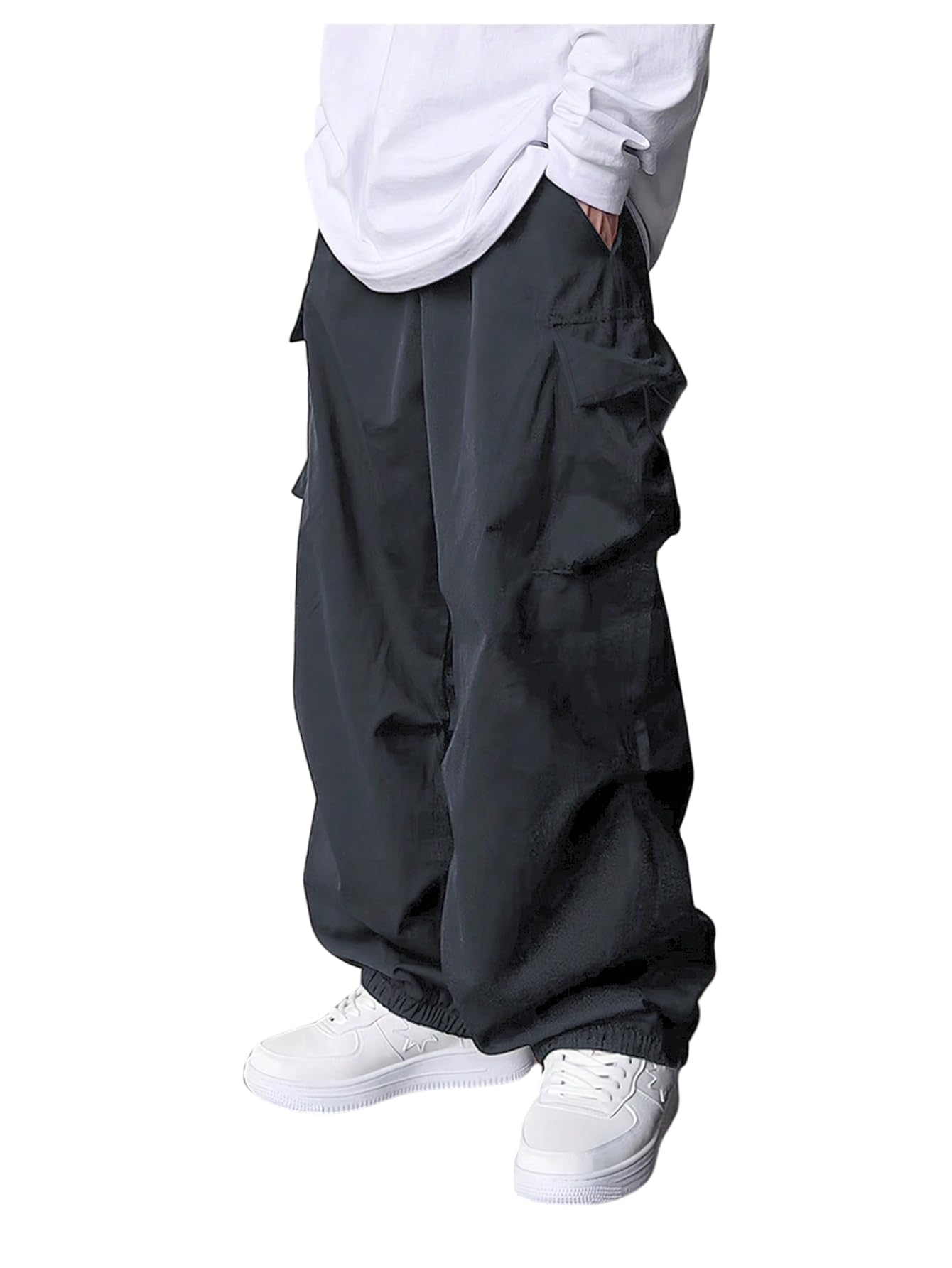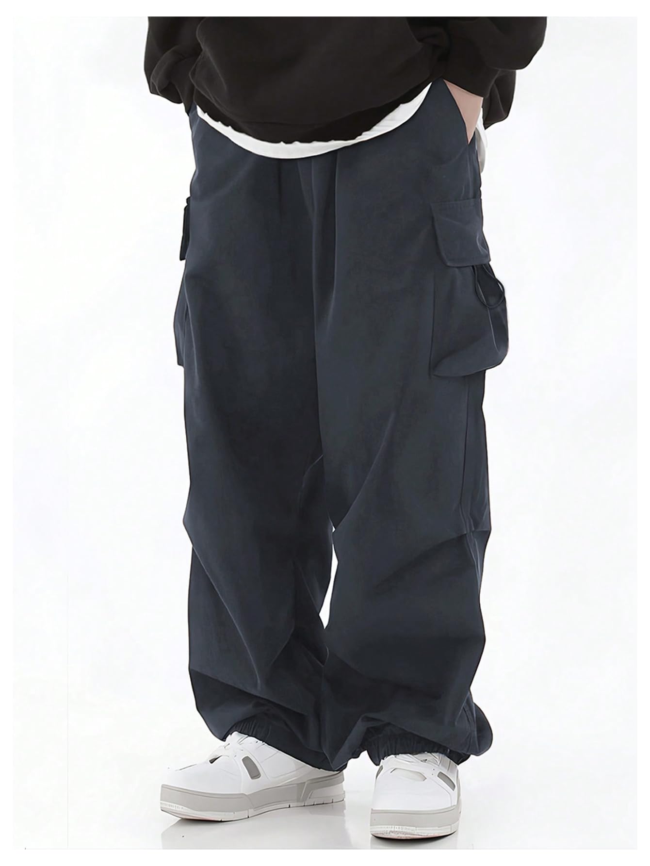Boy's baggy cargo pants feature a classic sleek design with flap pockets on each leg, offering a cool and party-inspired look
