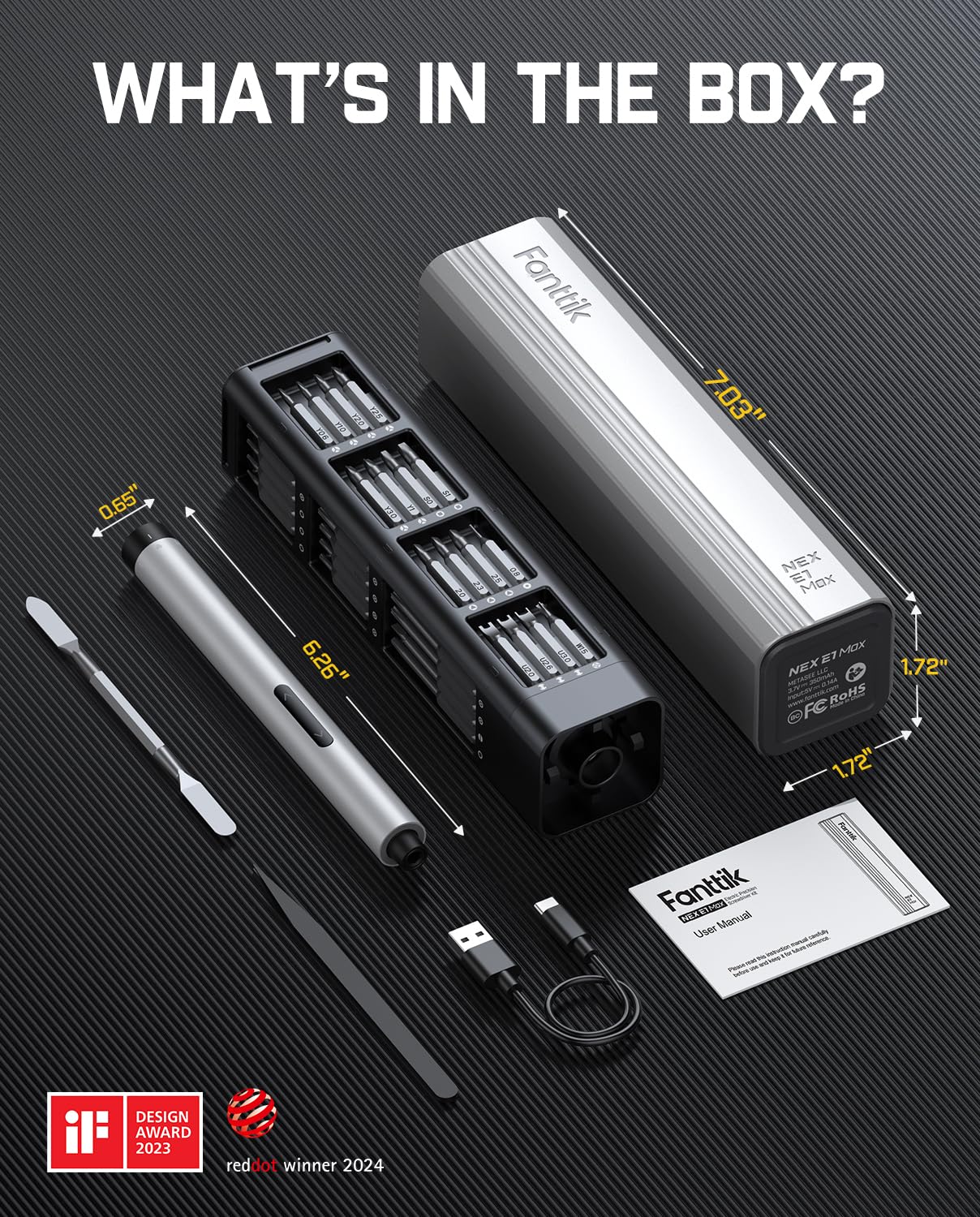 Award-Winning & Media-Endorsed: Winner of the 2023 iF Design Award and 2024 Red Dot Design Awards, and featured by top media. This precision electric screwdriver is a go-to for DIYers, innovators, and idea makers who value both style and performance.