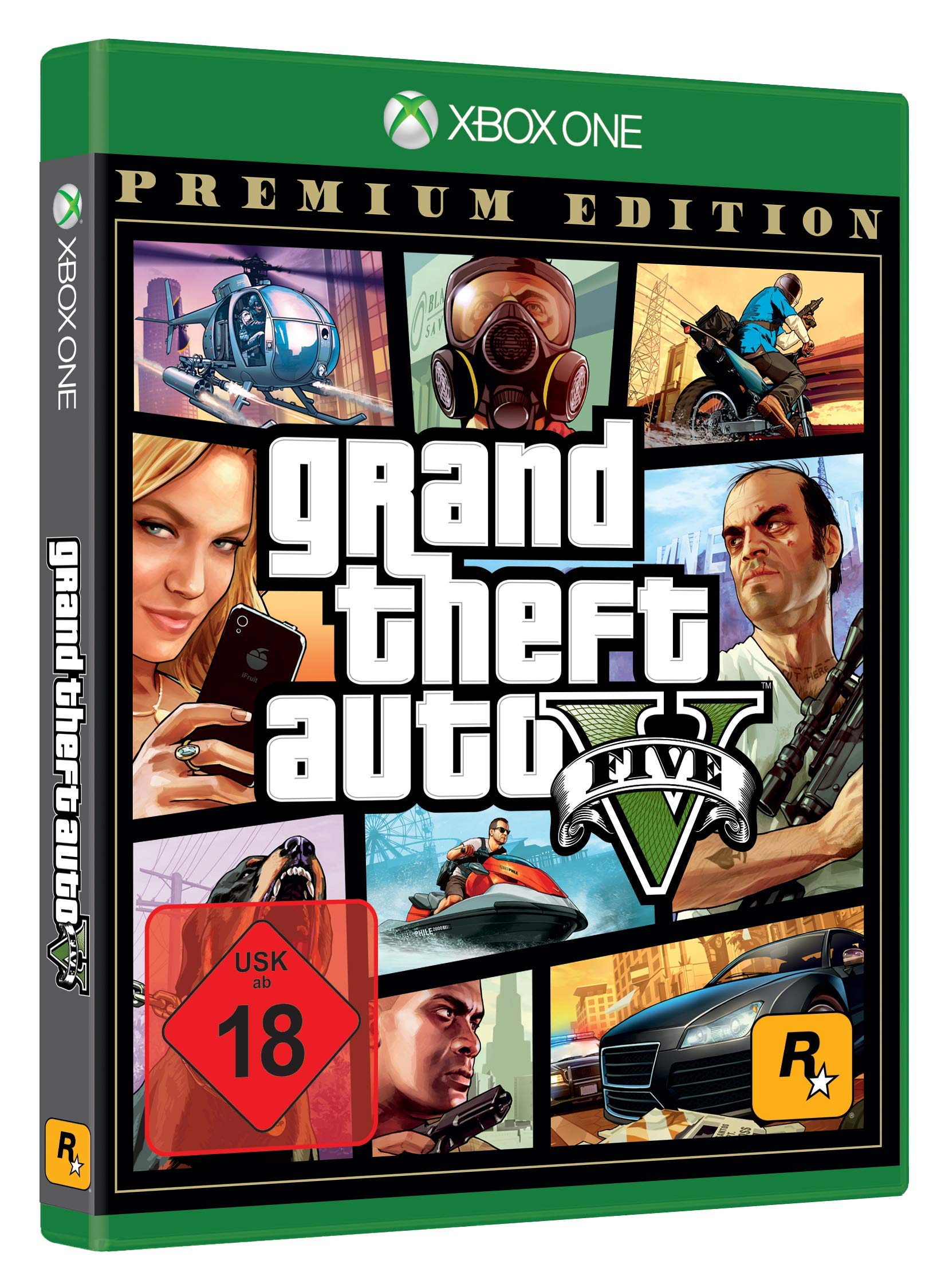 Los Santos: eine weitläufige, sonnendurchflutete Metropole voller Selbsthilfe-Gurus, Sternchen und vergessener Promis. Einst beneidet vom Rest der westlichen Welt, befindet sich die Stadt jetzt in einer Zeit der wirtschaftlichen Unsicherheit und des billigen Reality-TVs im Kampf gegen den Untergang. Inmitten des Chaos schmieden drei völlig unterschiedliche Kriminelle ihre eigenen Überlebens- und Erfolgspläne: Franklin, ein Straßengauner, der auf die richtige Gelegenheit und das große Geld aus ist; Michael, ein erfahrener Verbrecher und Ex-Häftling, dessen Ruhestand weit weniger rosig ist als erhofft; und Trevor, ein brutaler Psychopath, den die Suche nach einem billigen Drogenrausch und dem nächsten großen Ding antreibt. Als der Crew kein anderer Ausweg mehr bleibt, setzen die drei bei einer Reihe waghalsiger und gefährlicher Überfälle, mit denen sie für den Rest ihres Lebens ausgesorgt hätten, alles auf eine Karte. Grand Theft Auto V bietet die größte, dynamischste und abwechslungsreichste offene Spielwelt, die je erschaffen wurde und verbindet Storytelling und Gameplay auf eine ganz neue Art und Weise. Der Spieler wechselt wiederholt zwischen den Leben der drei Hauptfiguren hin und her und erlebt so alle Seiten der verwobenen Geschichte. Alle charakteristischen Merkmale der bahnbrechenden Reihe werden auch den neuesten Teil auszeichnen, darunter die unglaubliche Liebe zum Detail und die für Grand Theft Auto typische schwarzhumorige Interpretation der Gegenwartskultur. Hinzu kommt eine brandneue und ambitionierte Herangehensweise an Multiplayer in einer offenen Spielwelt. GTA V bietet zahlreiche grafische und technische Verbesserungen für eine noch lebendigere Welt. Übertrage bestehende Grand Theft Auto Online-Charaktere und den Spielfortschritt auf Playstation 4. Bestehende Spieler erhalten exklusive Fahrzeuge, Waffen, Sammelobjekte und mehr. Beinhaltet alle kostenlosen Updates für Grand Theft Auto Online und Grand Theft Auto V. Beinhaltet Grand Theft Auto Online. Los Santos & Blaine County... Die gesamte Spielwelt von Grand Theft Auto V - unsere bislang bei weitem größte offene Welt - mit ihren kulturell und geographisch enorm vielfältigen Gebieten kann von Spielbeginn an vollständig erkundet werden. In der riesigen Metropole Los Santos und im ländlichen Blaine County triffst du auf abgehalfterte Prominenz, Drogensüchtige, Partygänger, gefährliche Gangs, Wanderer, Rocker und alle möglichen anderen schillernden Gestalten. Alles ist frei zugänglich, von Berggipfeln durch die Straßen von Los Santos bis hinunter zum Meeresgrund. Einführung... Die drei spielbaren Protagonisten, Michael, Franklin und Trevor wohnen zwar in verschiedenen Teilen der Stadt, haben ihren ganz eigenen Lebensstil und eigene Probleme, Einstellungen, Wünsche und Ziele - aber sie wissen, wie man zusammenarbeitet. Und wenn es hart auf hart geht, bringt jeder von ihnen ganz eigene, einzigartige Fähigkeiten mit. Freizeitgestaltung... Die offene Spielwelt von Grand Theft Auto V ist nicht nur ungeheuer weitläufig, sie bietet auch mehr Möglichkeiten als je zuvor. Wenn du dich erholen willst, kannst du eine Partie Golf oder Tennis spielen, dich beim Yoga entspannen oder durch die Gegend radeln ... Wenn du den Adrenalinkick suchst, springst du mit dem Fallschirm über der Stadt ab oder tunst deinen Cheetah und fährst ein Straßenrennen um Geld. Geld verdienen kannst du natürlich auch auf die altmodische Art: indem du es dir einfach nimmst - egal, ob du Schnapsläden überfällst oder Firmen aufkaufst und übernimmst, die dir Dividende einbringen ... Und selbst wenn du einfach nur ein bisschen spazieren gehst, könntest du einem der vielen Verrückten, Junkies, Besoffenen oder Filmsternchen von Los Santos begegnen - und plötzlich steckst du mittendrin in irgendeinem völlig unerwarteten Schlamassel ... Raubüberfälle... Kleinkriminalität, Zuhälterei und Autodiebstahl bringen einen in Los Santos nicht nach oben. Um richtig abzusahnen, müssen Michael, Franklin und Trevor zusammenarbeiten und waghalsige Raubüberfälle durchführen - große, mehrteilige Missionen, die man sorgfältig planen, für die man die richtigen Mitarbeiter aussuchen und die man präzise (und oft mit einem ziemlichen Knalleffekt) ausführen muss. Geld regiert die Welt von GTA V, und obwohl man es auf vielfältige Weise verdienen und ausgeben kann - die ganz große Kohle ist nur mit Raubüberfällen zu machen. Die Premium Edition beinhaltet Grad Theft Auto V und Grand Theft Auto Online inkl. des Criminal Enterprise Starter Pack (kostenloser DLC bei Neukauf enthalten, einmalig verwendbar)