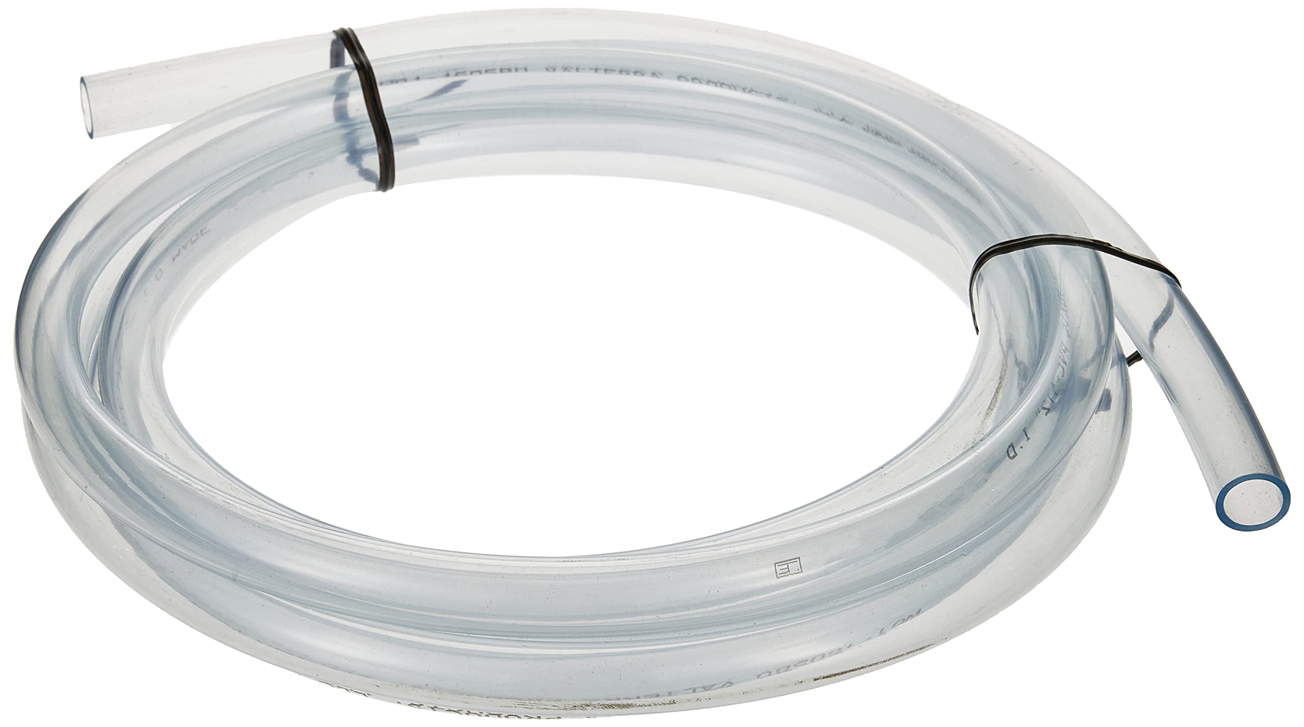 Tubing Details - PVC vinyl tubing, ID: 3/8", OD: 1/2", 10 feet, Wall thickness: 1.6mm; Hardness: 73A (firm); Temperature Range : 23°F to 149°F (-5°C to 65°C); Working Pressure: 60PSI.
