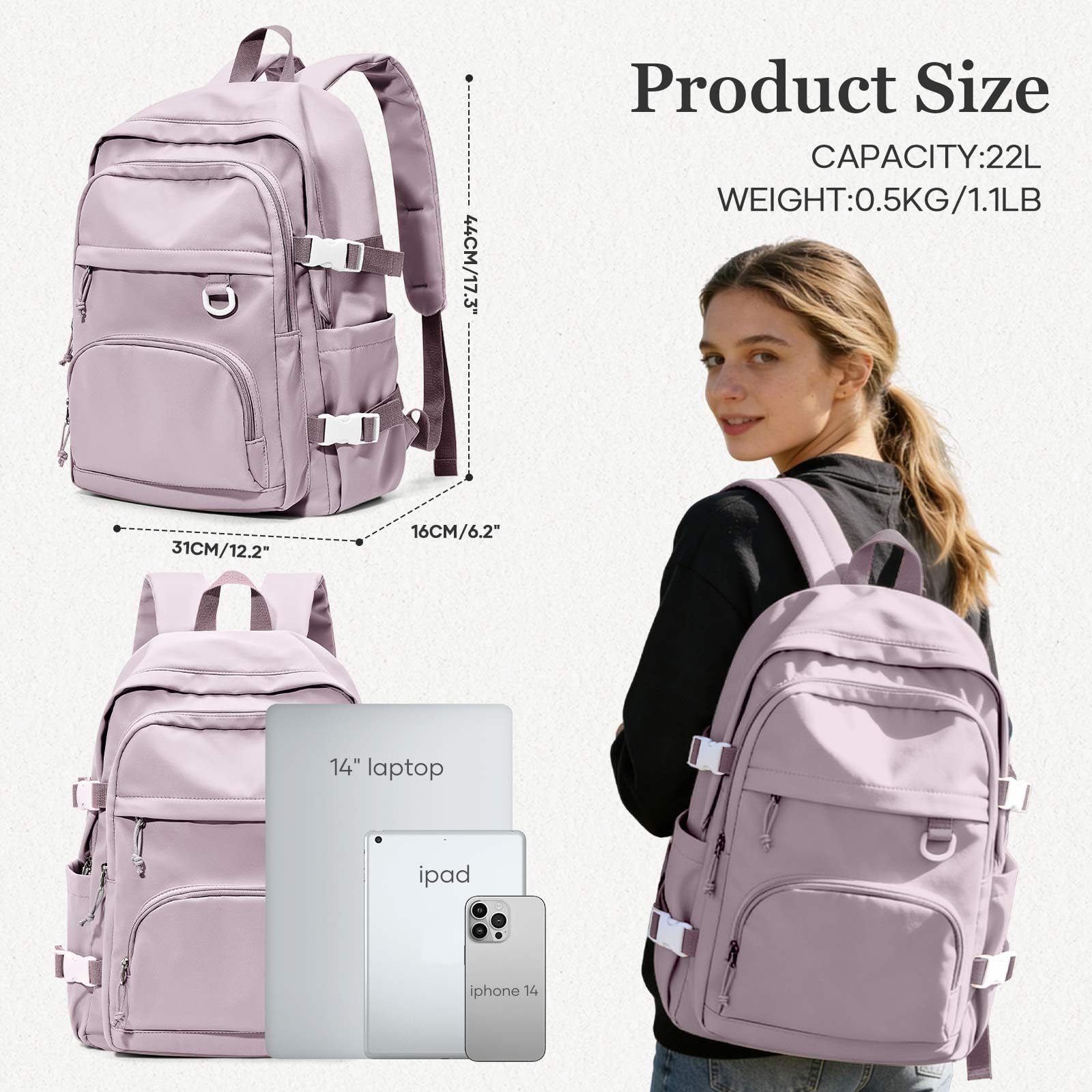 College Student Backpack Size】The backpack measures 13.38 “x18.5 ”x6.69" (W*H*D), Weight: 1.49LB.The backpack is available in six colors.