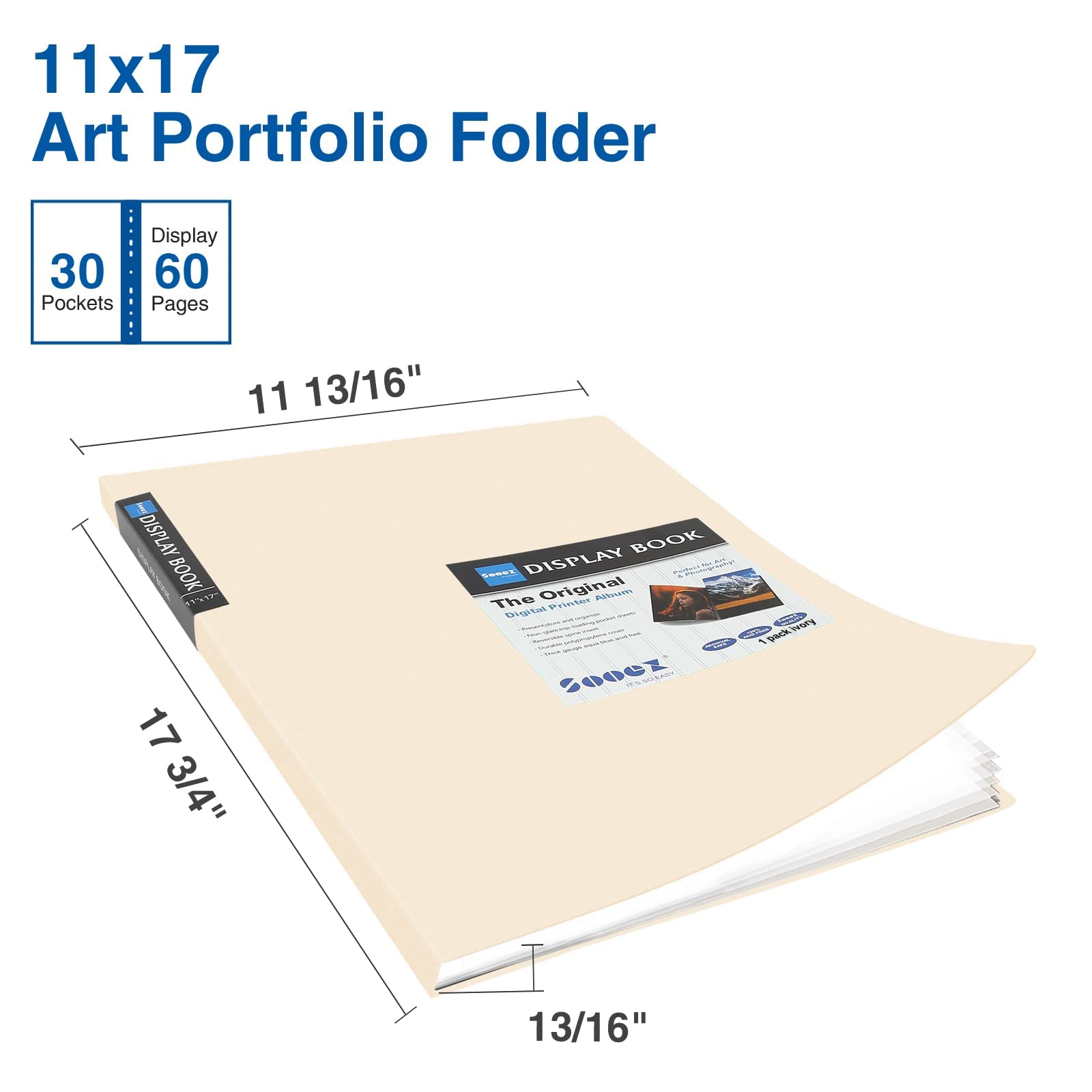 Large 11x17 Art Portfolio Folder: Folder measures 17 3/4" (L) x 11 13/16" (W) x 13/16" (G). Suitable for artwork storage and displaying your 11.18" x 17.4" artwork.