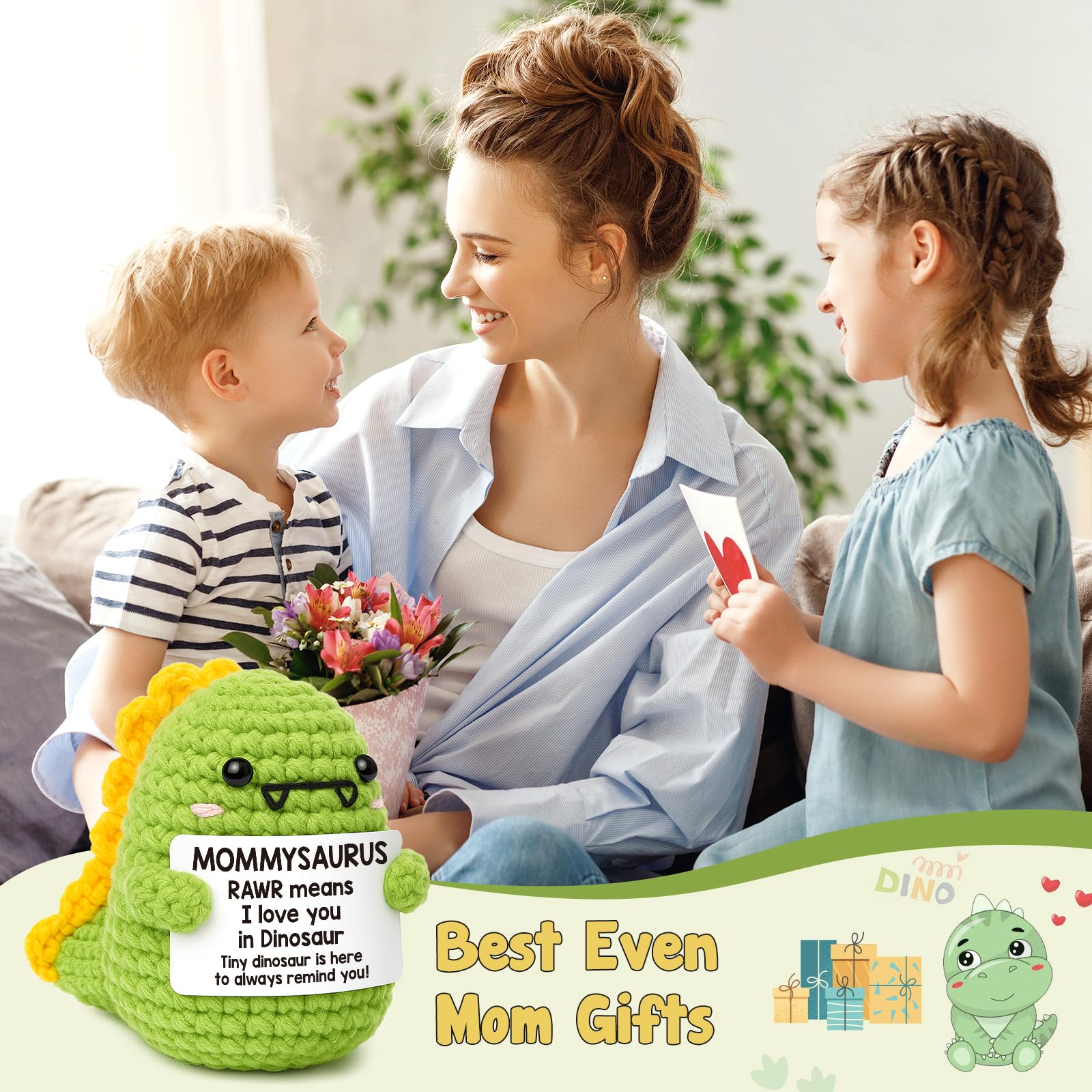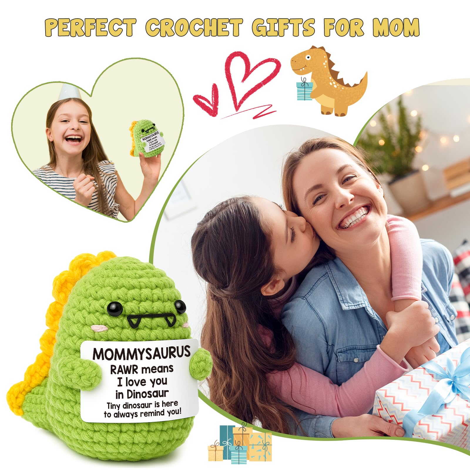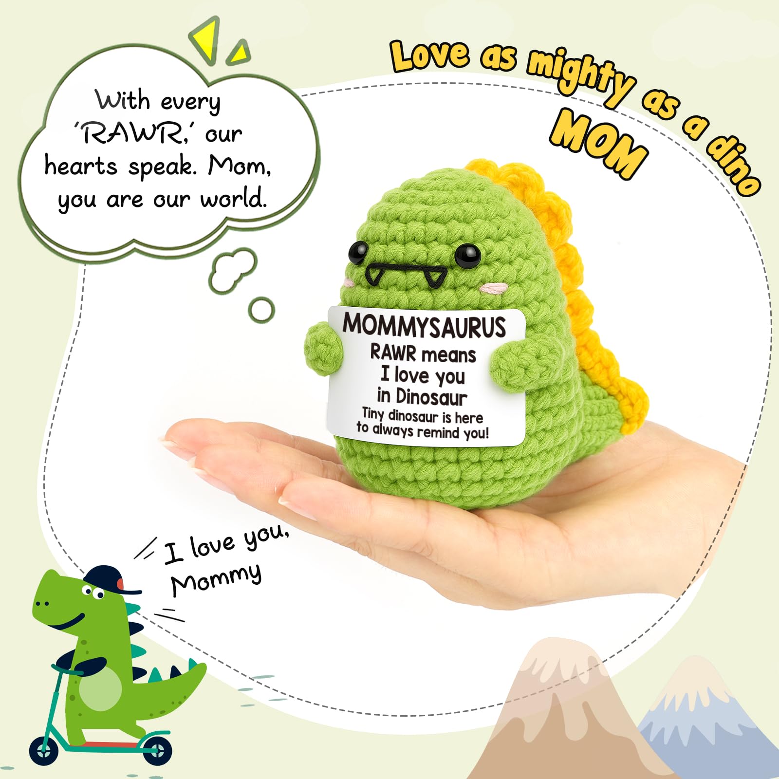 Mom Gifts from Daughter – A Heartfelt Mother’s Day Surprise Celebrate Mother’s Day with this adorable MommySaurus knitted plush, the perfect Mom Mother’s Day Gift! Featuring a heartfelt card that says, “MommySaurus RAWR means I love you in dinosaur”, this tiny dinosaur is a sweet reminder of your love and appreciation for your mom.