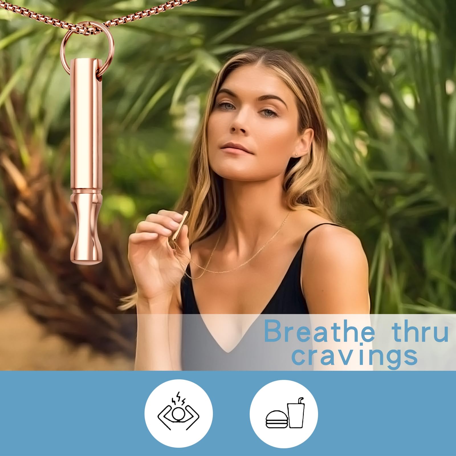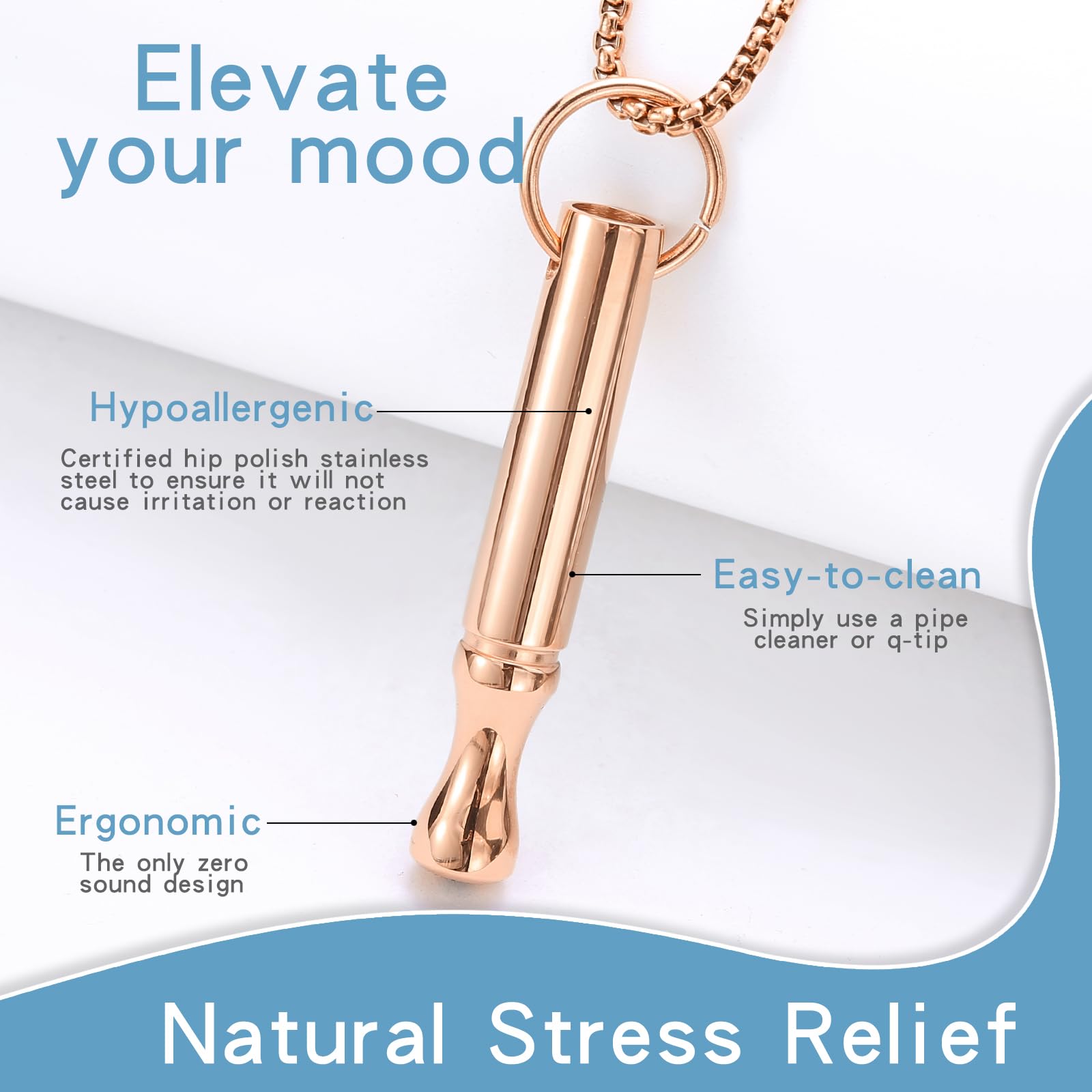 MINDFULNESS BREATHING NECKLACE: Take a slow inhale through your nose for 4 seconds, hold for 7 seconds, then exhale slowly using the breathing tool for 8 to 10 seconds. Repeat for several cycles. This breathing technique will naturally calm your body and mind.