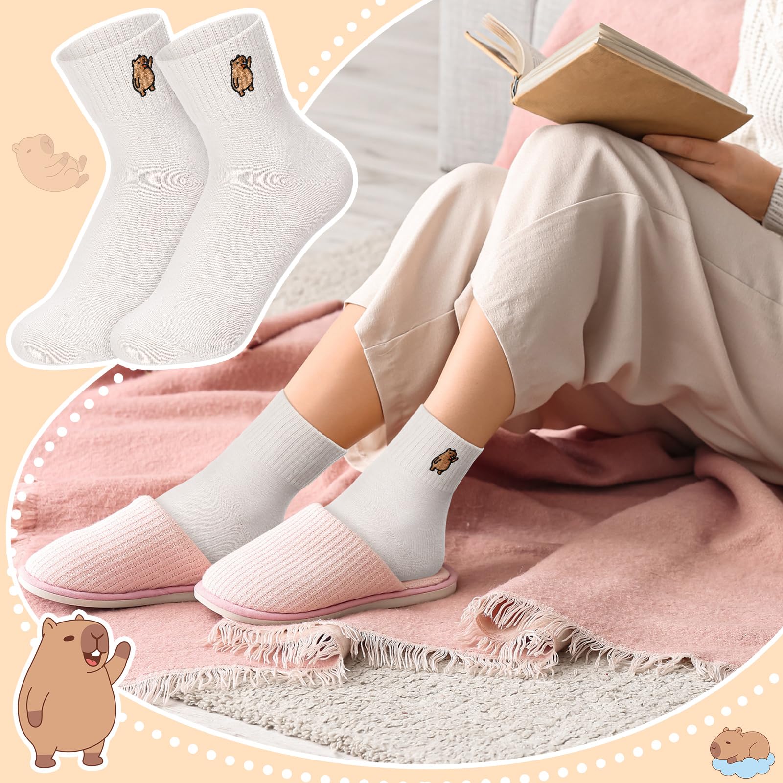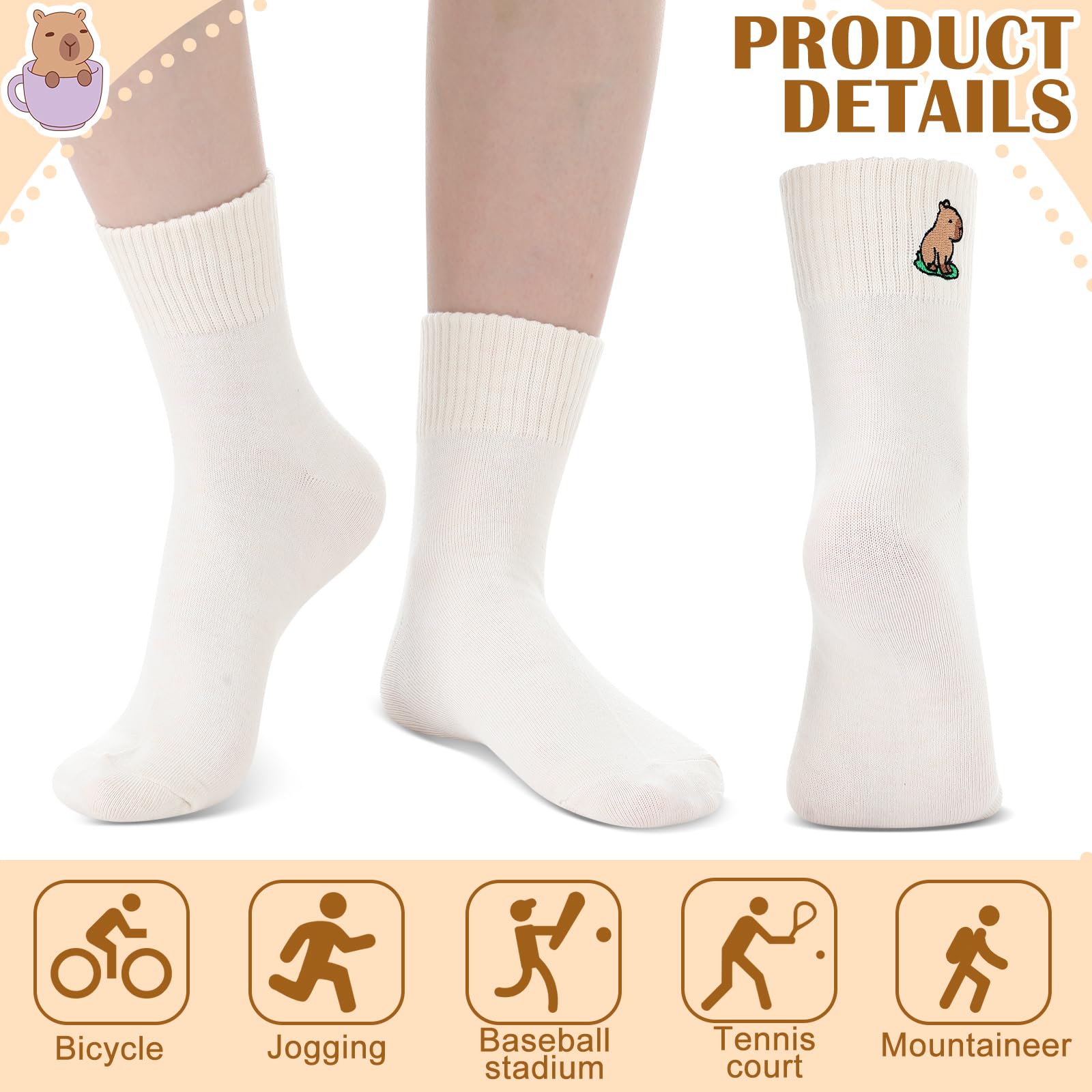 One Size Fits Most: the cartoon capybara socks are proper in size, suitable for most women to wear, easy to match with various type of shoes or boots; And you can choose a cute style according to your mood
