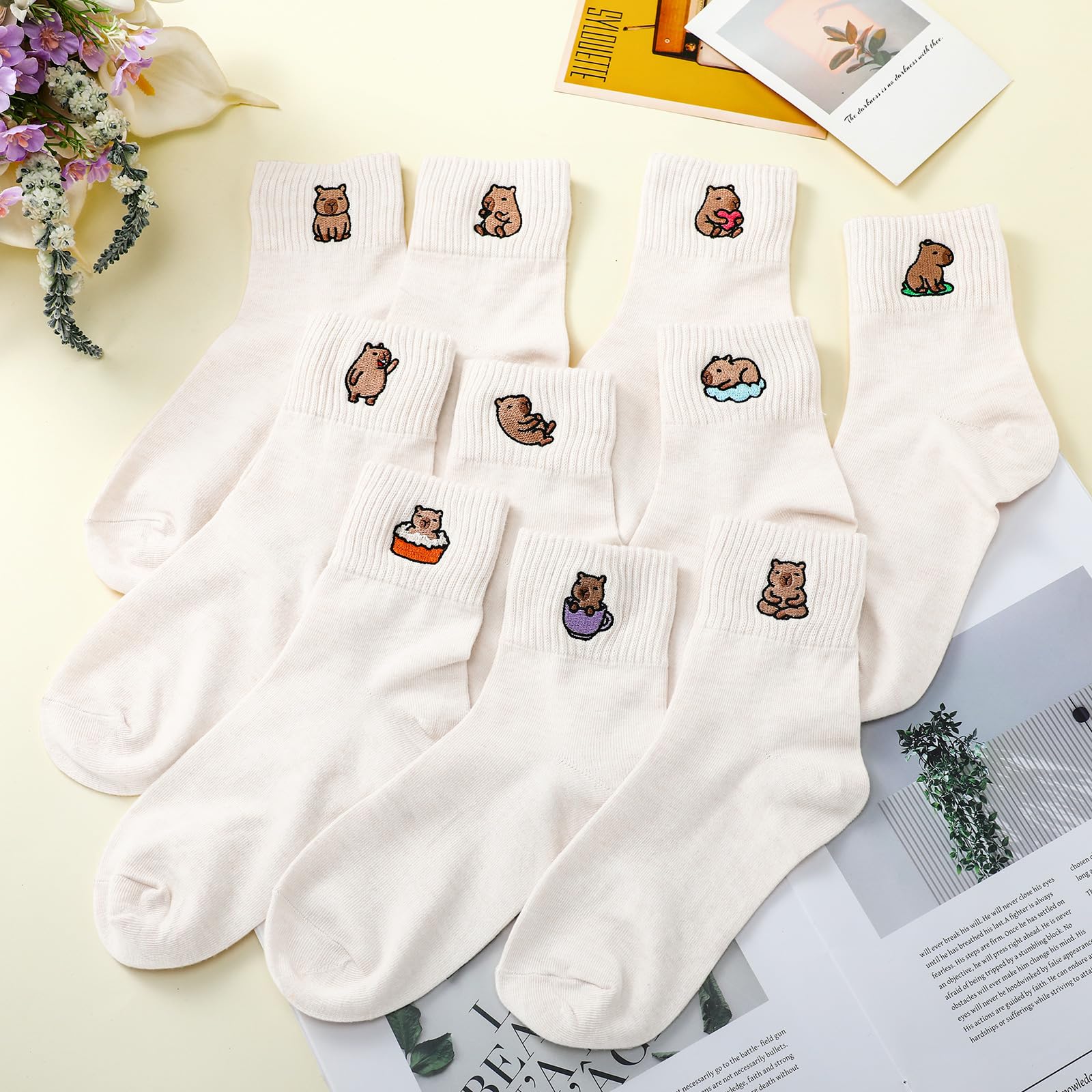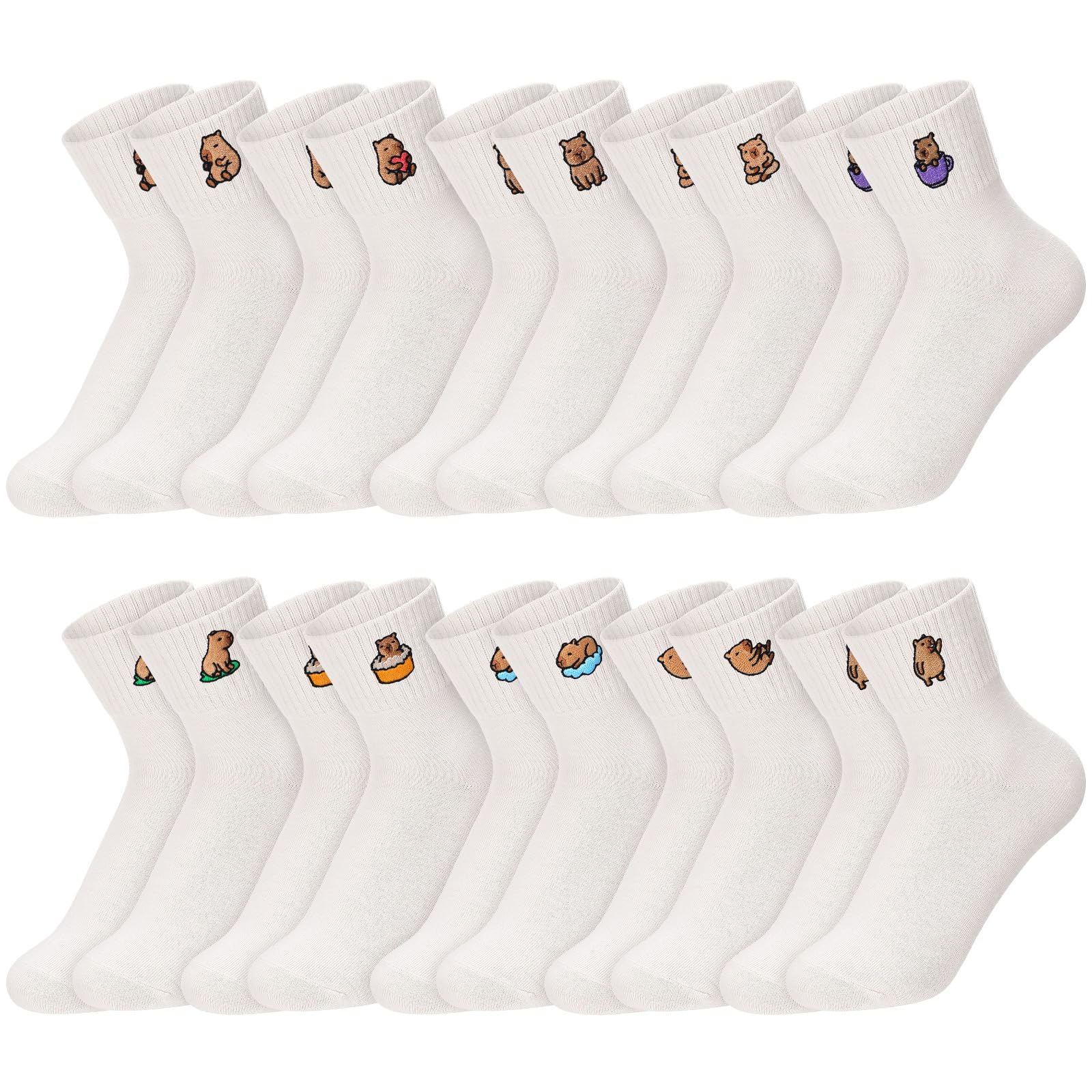 10 Capybara Styles for Choosing: the package includes 10 pairs of capybara socks in white, abundant in quantity and rich in styles, enough for you to choose or replace, can meet your daily wear needs; You can also share them with your mother