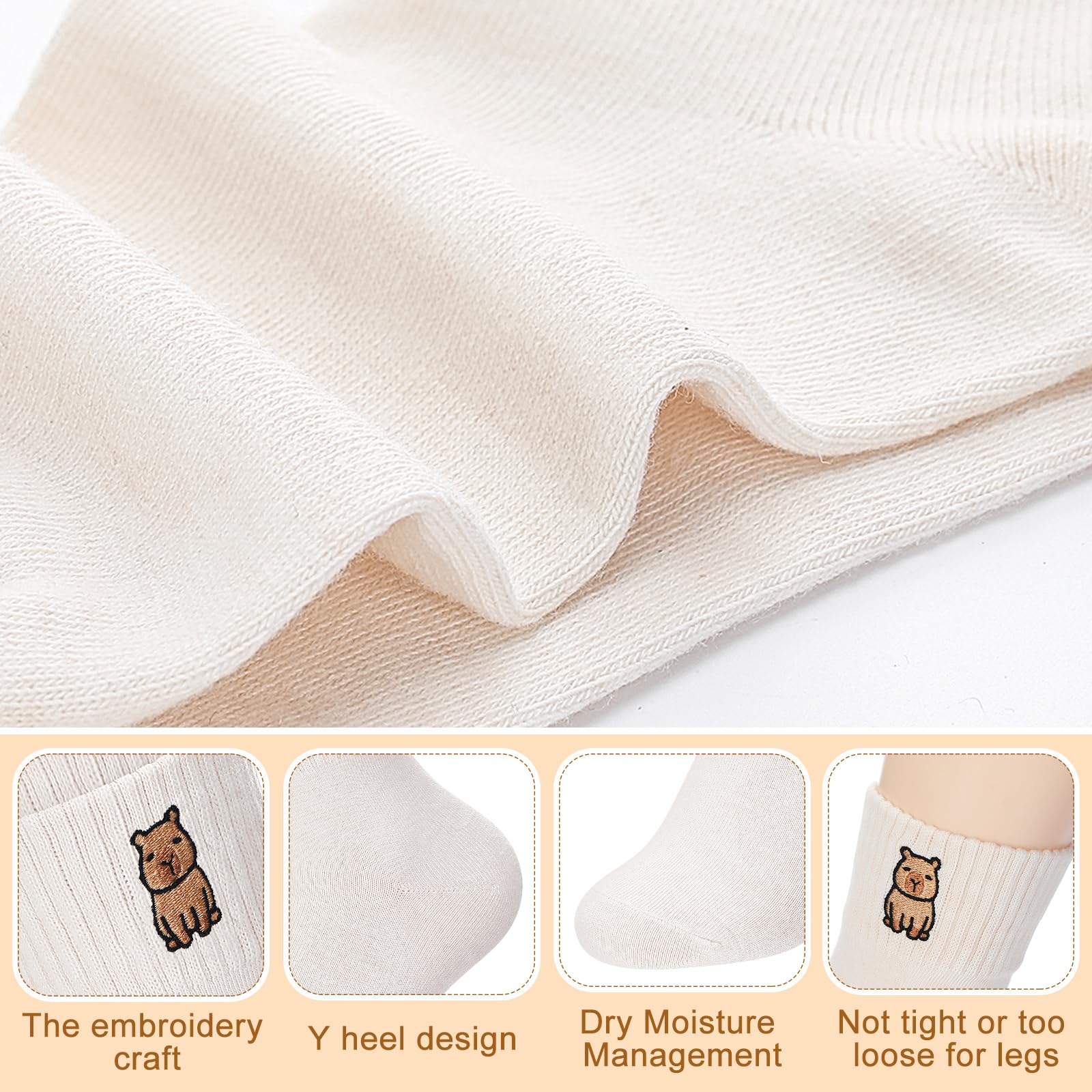 Cute Capybara Design: the cute capybara women socks are printed with cute capybara pattern, designed with white, cute and funny, stylish and personalized, showing off your sweetness, easy to catch the eye of others