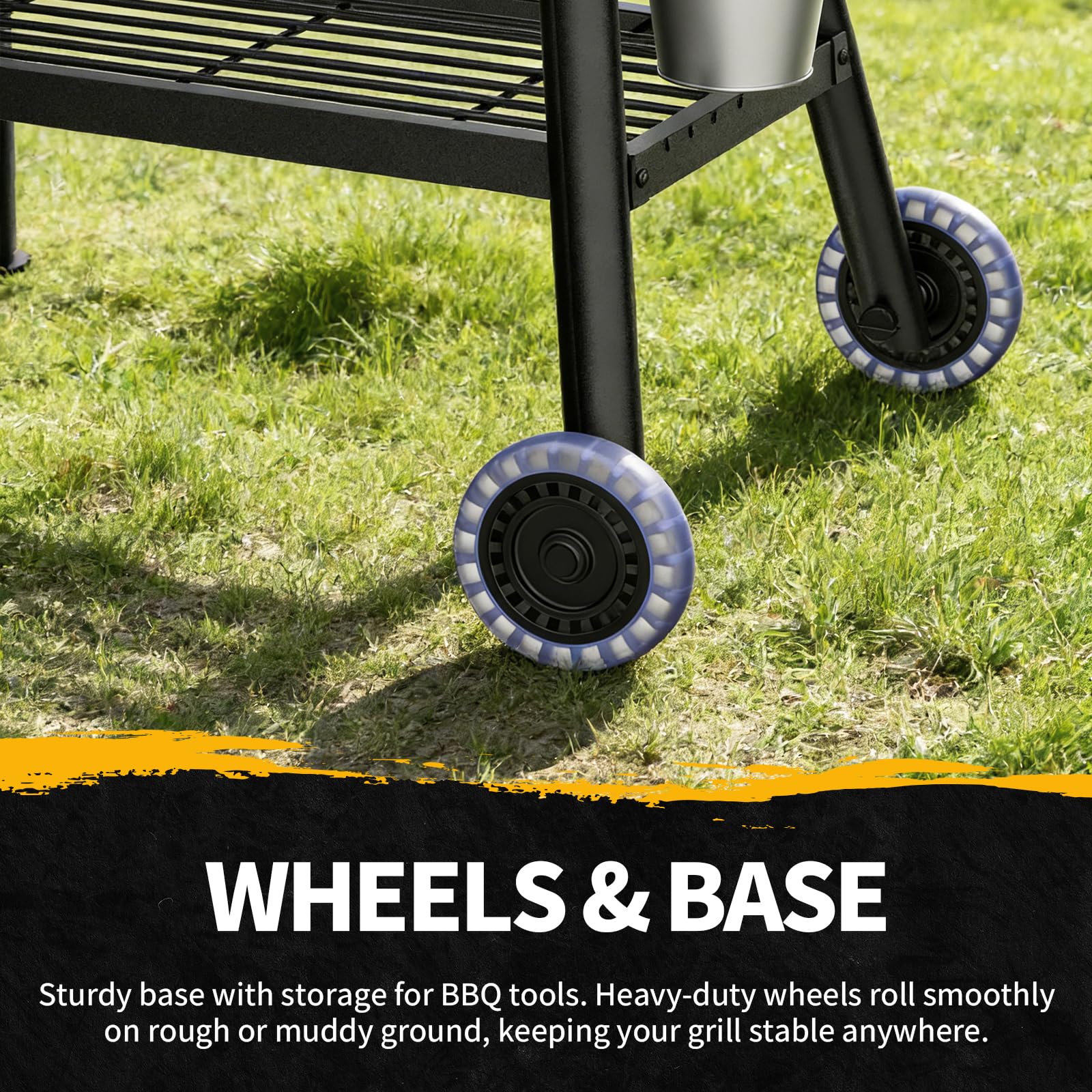 Durable Construction: Built from rugged sturdy steel, this grill is resistant to corrosion and built for long-lasting performance. The high-quality lid maintains precise temperatures, while the two heavy-duty all-terrain wheels make it easy to move. The waste oil collector simplifies cleanup