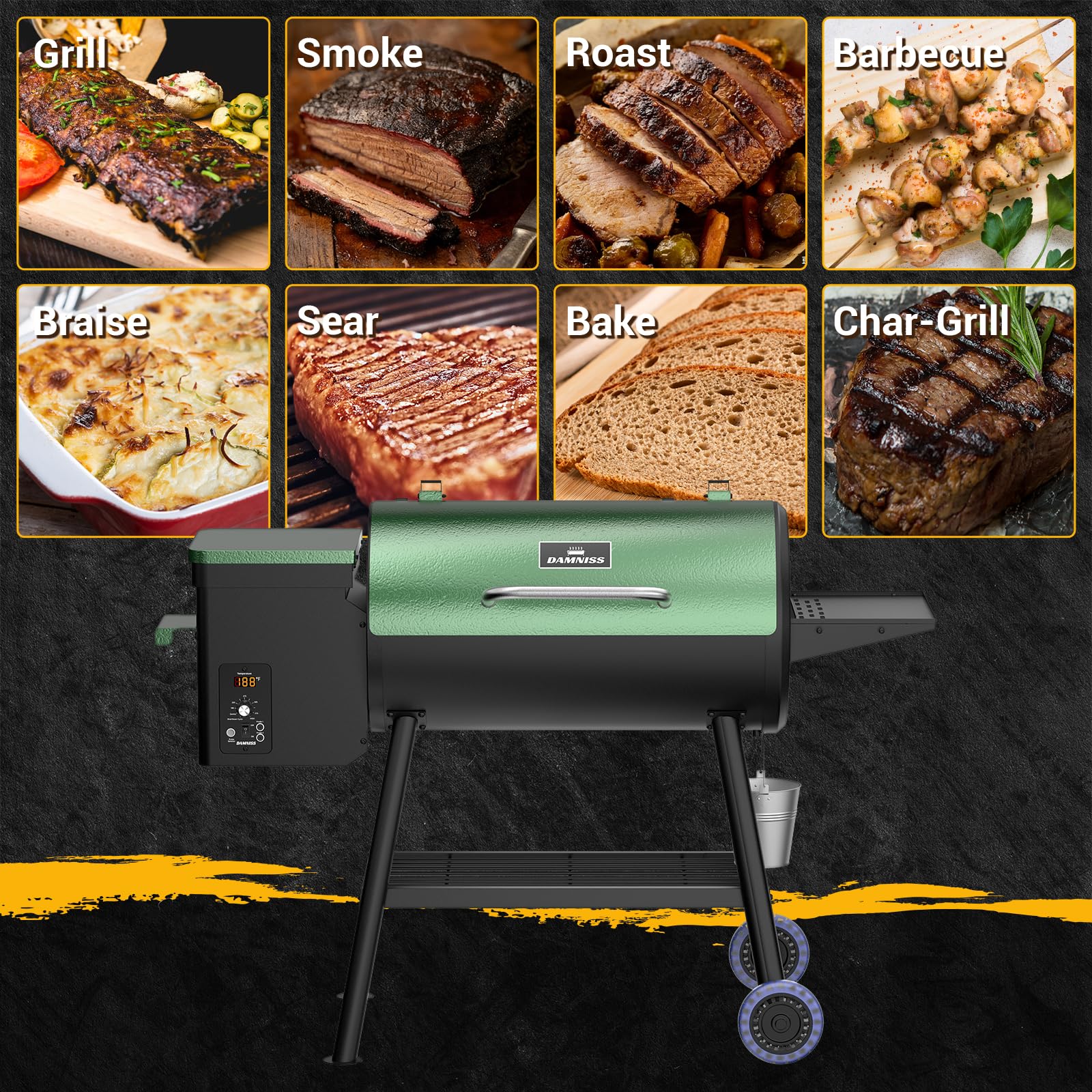 Precision Control: Featuring a PID intelligent temperature control system and automated pellet feed, the smart digital control board auto-ignites the grill and lets you set temperatures from 180°F to 450°F, optimizing smoke production for exceptional flavor
