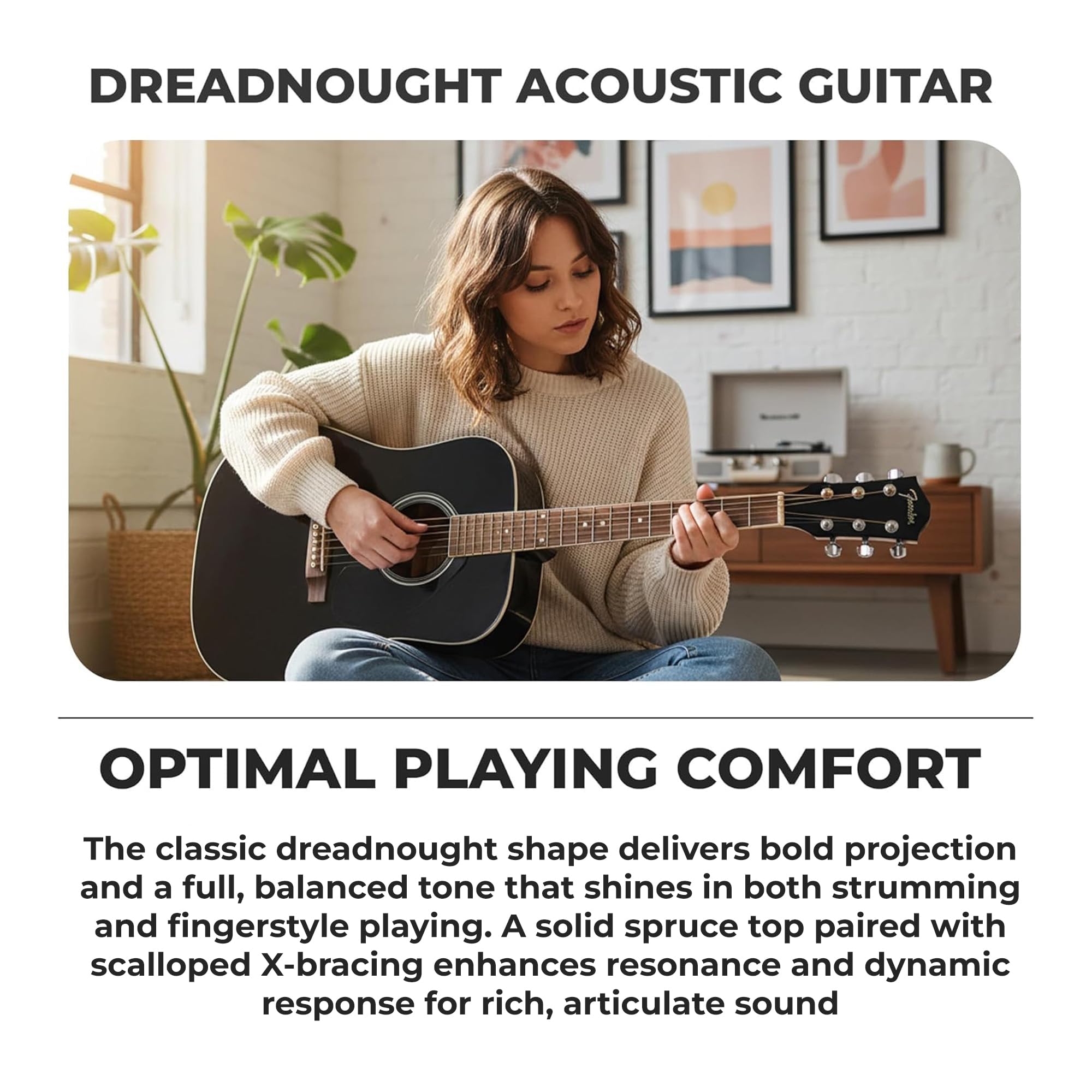 POWERFUL DREADNOUGHT BODY: The classic dreadnought shape delivers bold projection and a full, balanced tone that shines in both strumming and fingerstyle playing
