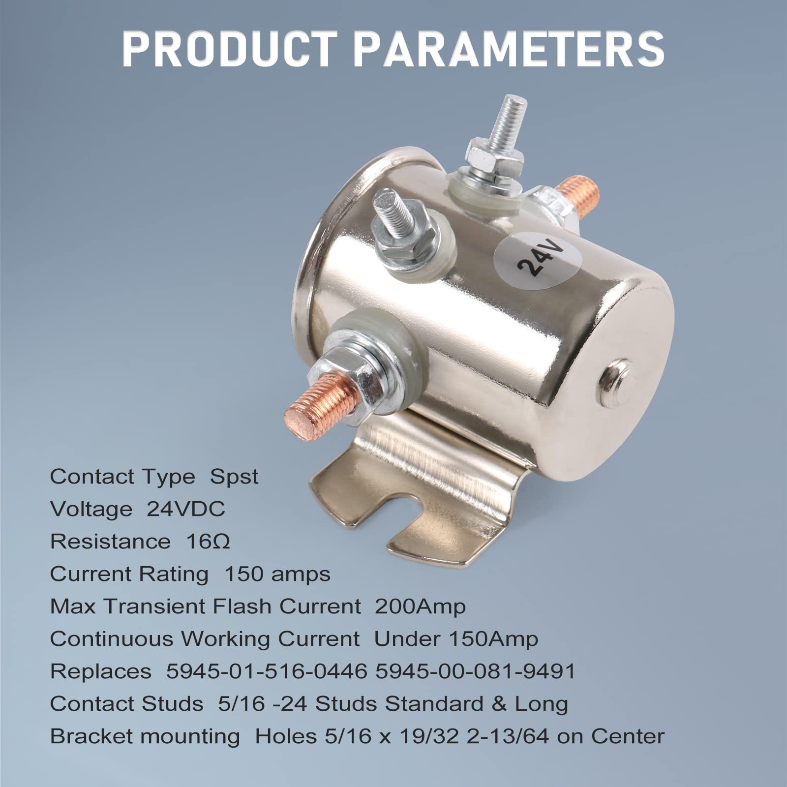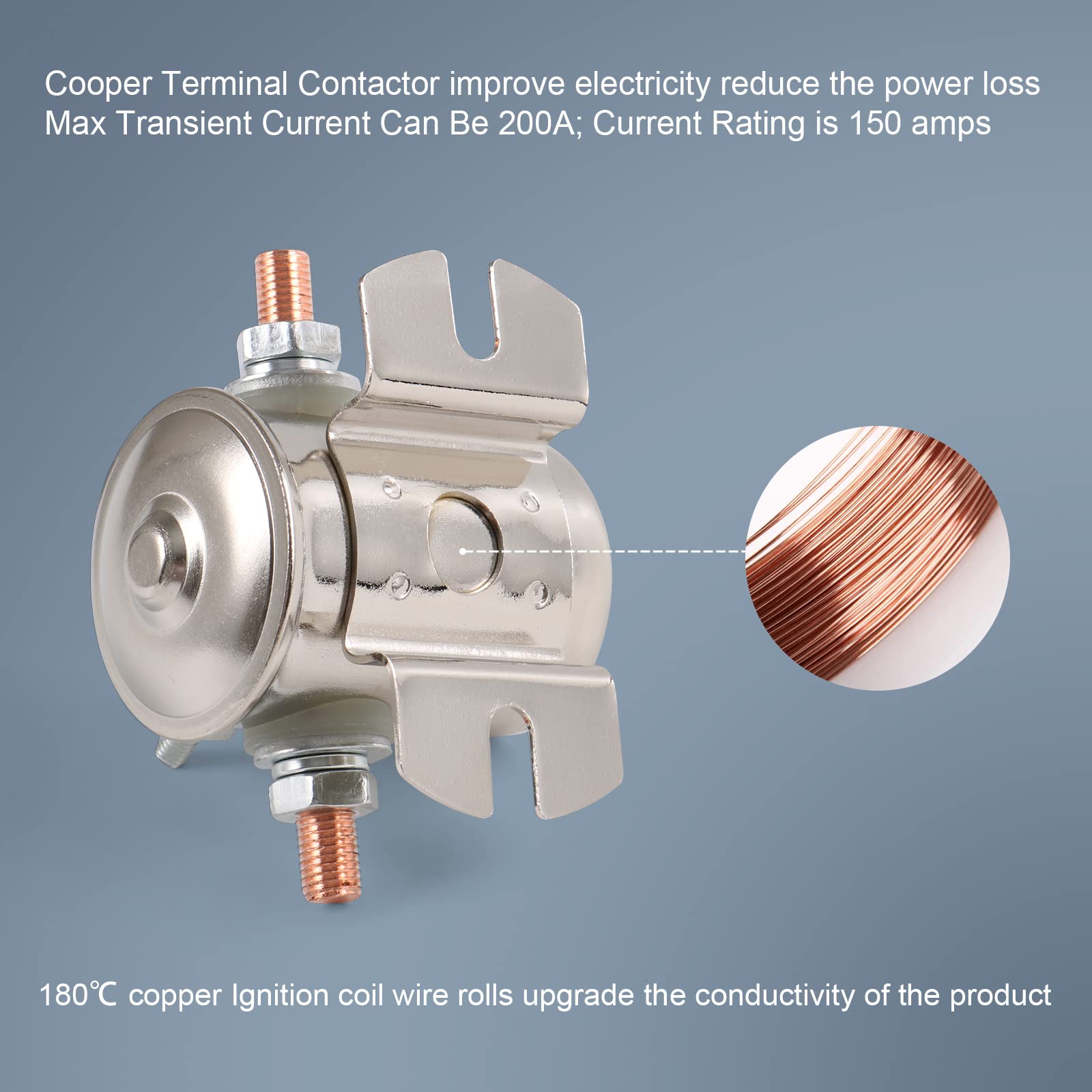 ✦ 【Contacts】Normally Open (NO)/ 24VDC With 2 Copper Point, Solid Shell/ Copper 5/16-Inch -24 thread, Max Transient current can be 200A/ Rated Current is 150A/ SPST, One Circuit, Off - On;Ignition coil wire is 180℃